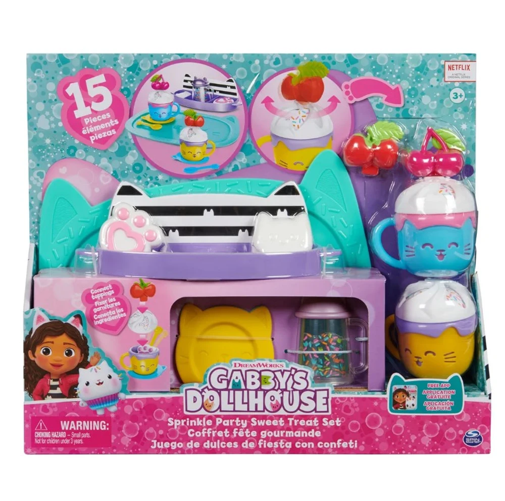 Com o Set de Chocolate Quente com Doces da Gabby, seus lanchinhos irão ficar ainda mais divertidos. Ele inclui 2 xícaras, 2 pires, 2 colheres, 2 coberturas, 2 coberturas de chantilly, 2 marshmallows, 1 jarrinha para misturar os ingredientes e 2 bandejas. Além disso, o set pode ser utilizado com a Cozinha da Cakey Cat (3631) vendida separadamente.