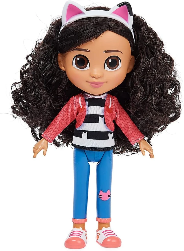 Saia com gabby da Gabbys Dollhouse com a nova boneca Gabby Girl! Com detalhes realistas da cabeça aos dedos dos dois, esta boneca de 8 polegadas dá vida a Gabby. Gabby Girl usa sua roupa clássica do show, incluindo tênis, jeans com um patch de gatinho, um top de tecido e sua assinatura de orelhas de gato na cabeça! Sua faixa de orelhas de gato é removível, e ela ainda tem cabelo macio e encaracolado que você pode estilizar. Com seu visual verdadeiro para mostrar, esta boneca infantil é a companhia perfeita para jogar suas próprias histórias emocionantes em casa. Pose os braços e pernas de Gabby e use sua imaginação para recriar suas cenas favoritas do show.