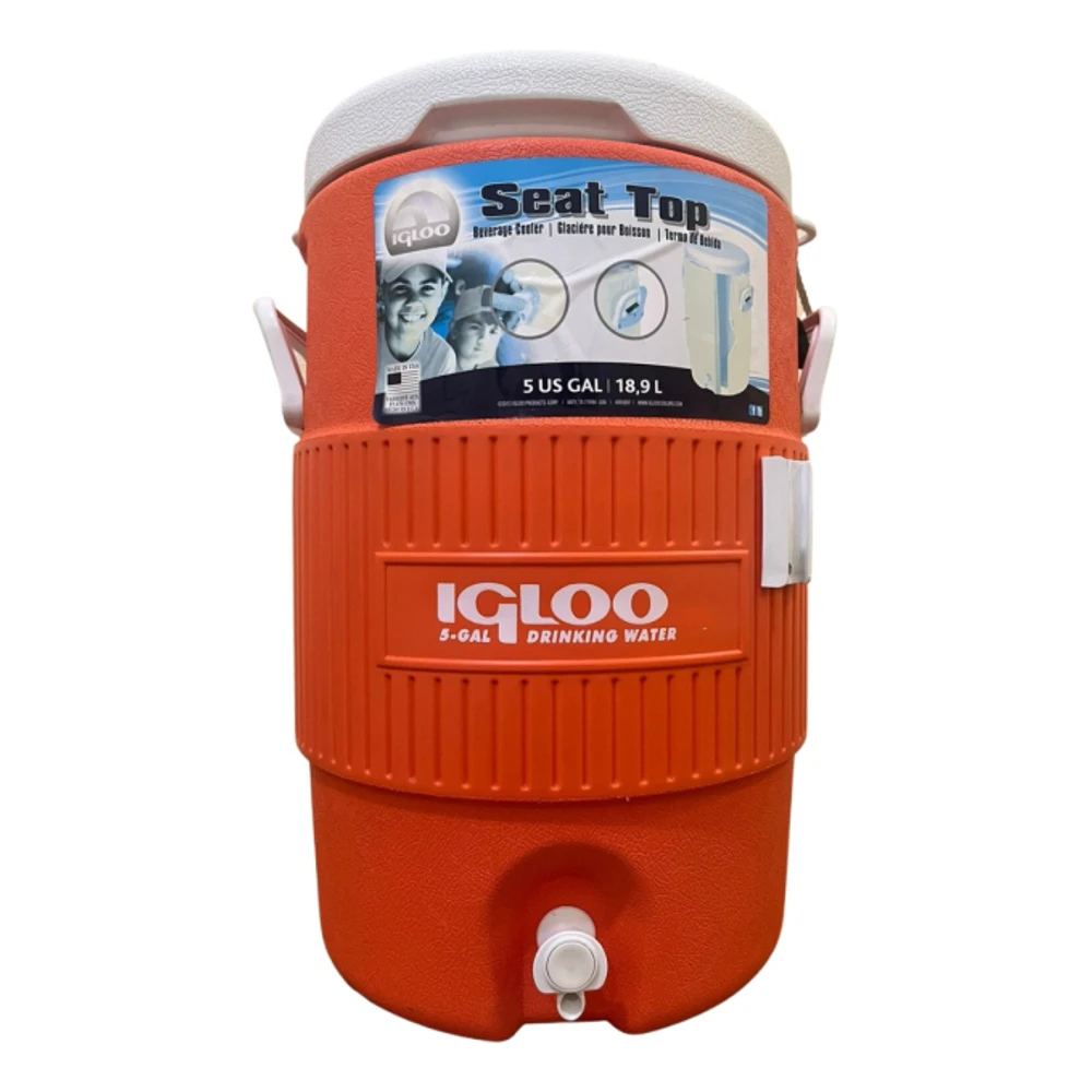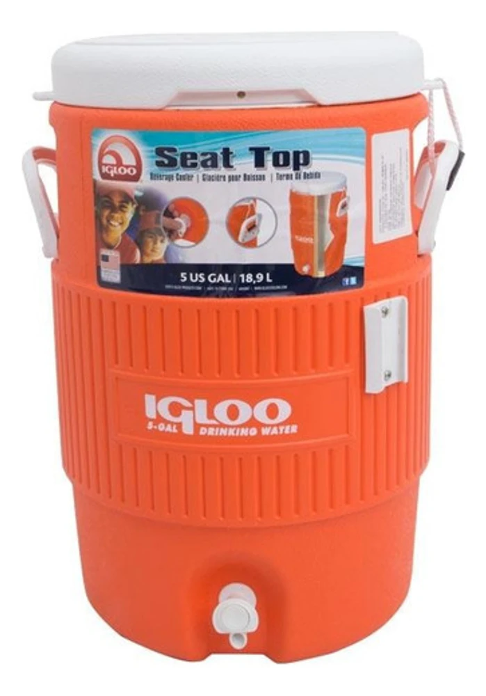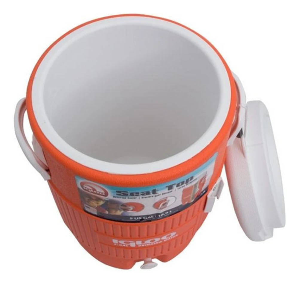 Galão térmico Igloo Seat Top 5 de 18,9 litros com alças reforçadas.
