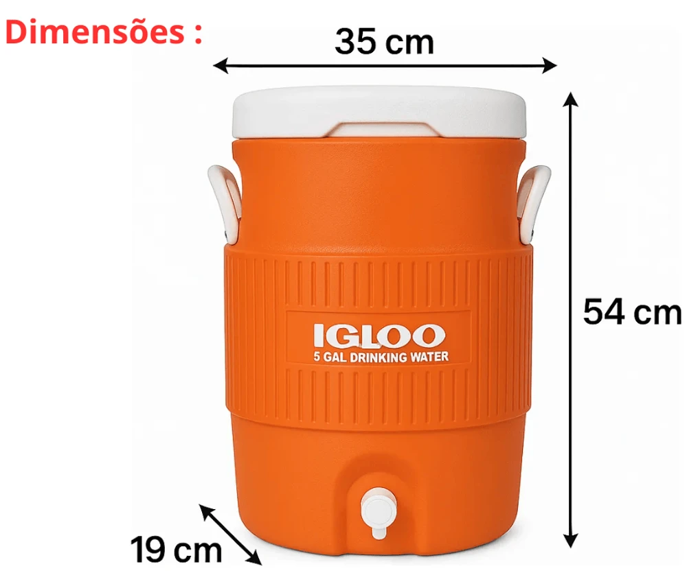 Sua capacidade é de 18,9 litros! Esse galão é capaz de manter os líquidos gelados por até 3 dias. Sem contar que sua torneira é resistente e possui um ângulo diferenciado para facilitar a distribuição. Além disso, o Seat Top 5 conta com alças reforçadas para maior resistência e longevidade do produto e também, um cabo preso na parte superior para prevenir possíveis perdas.