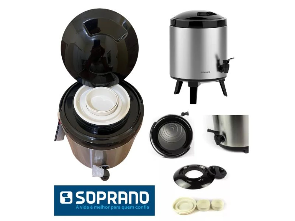 Principais características: ? Alça para transporte ? Pés retráteis ? Porta sache de açúcar ? Bocal largo para colocar gelo ou líquidos ? Acabamento em aço inox com verniz, que evita manchas e marcas ? Indicado para líquidos quentes ou frios ? Isolamento térmico em poliuretano (PU) ? Livre de Bisfenol (BPA Free).