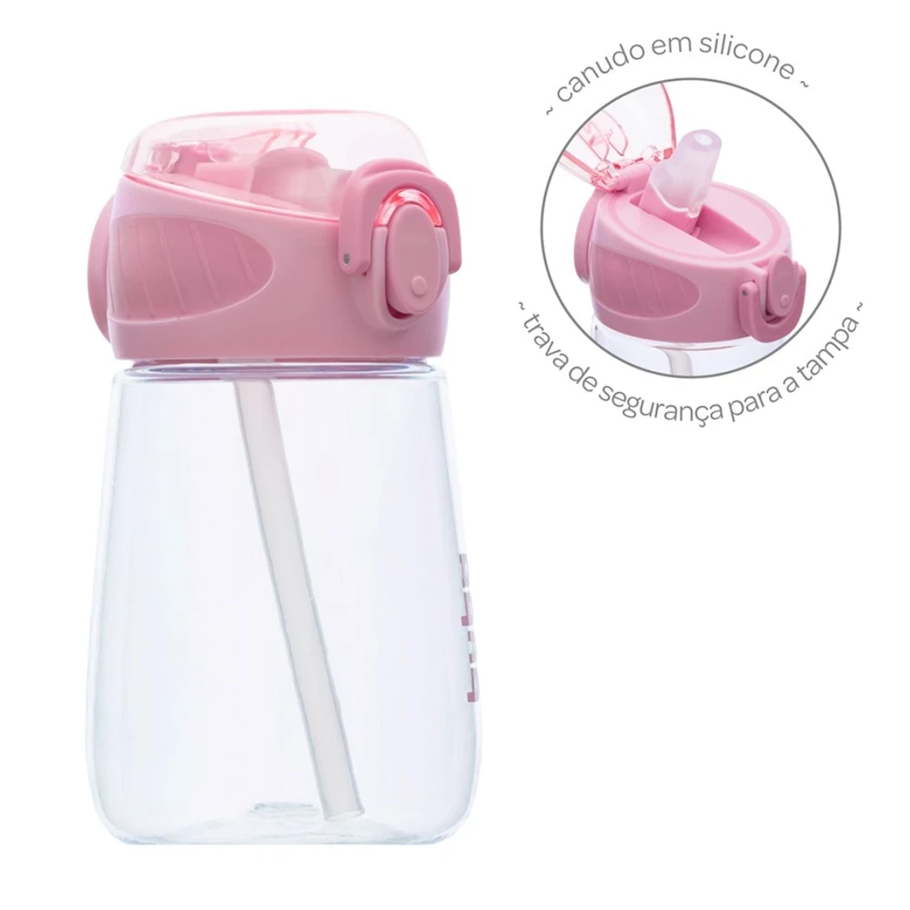 Com a Garrafinha Tritan Rosa Buba, a hidratação se torna prática, divertida e segura, acompanhando a criança em todas as aventuras do dia a dia!