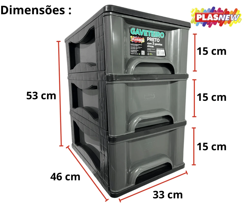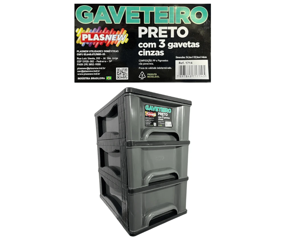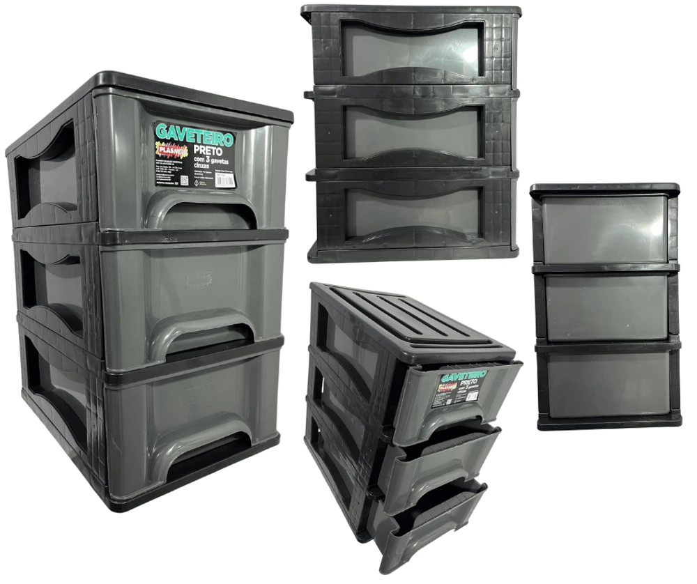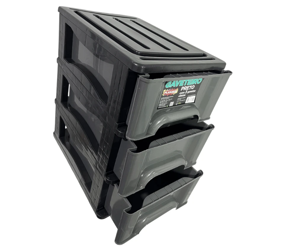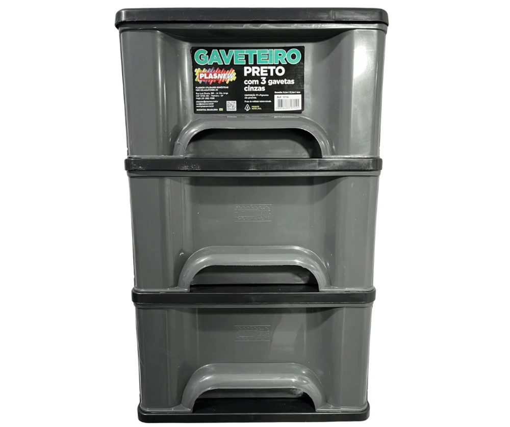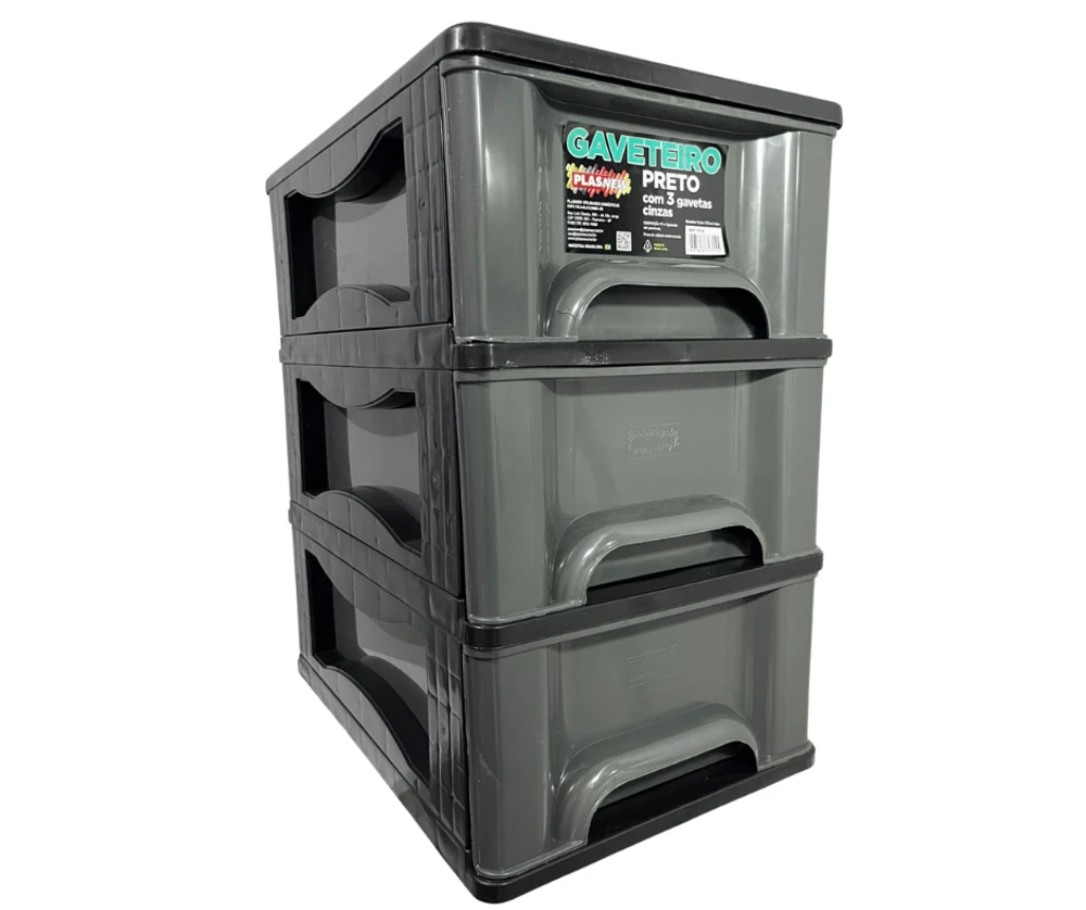 O Gaveteiro Organizador 3 Gaveta Plasnew Preto com Cinza 1714,é a solução perfeita para manter seus objetos organizados de forma prática e eficiente.