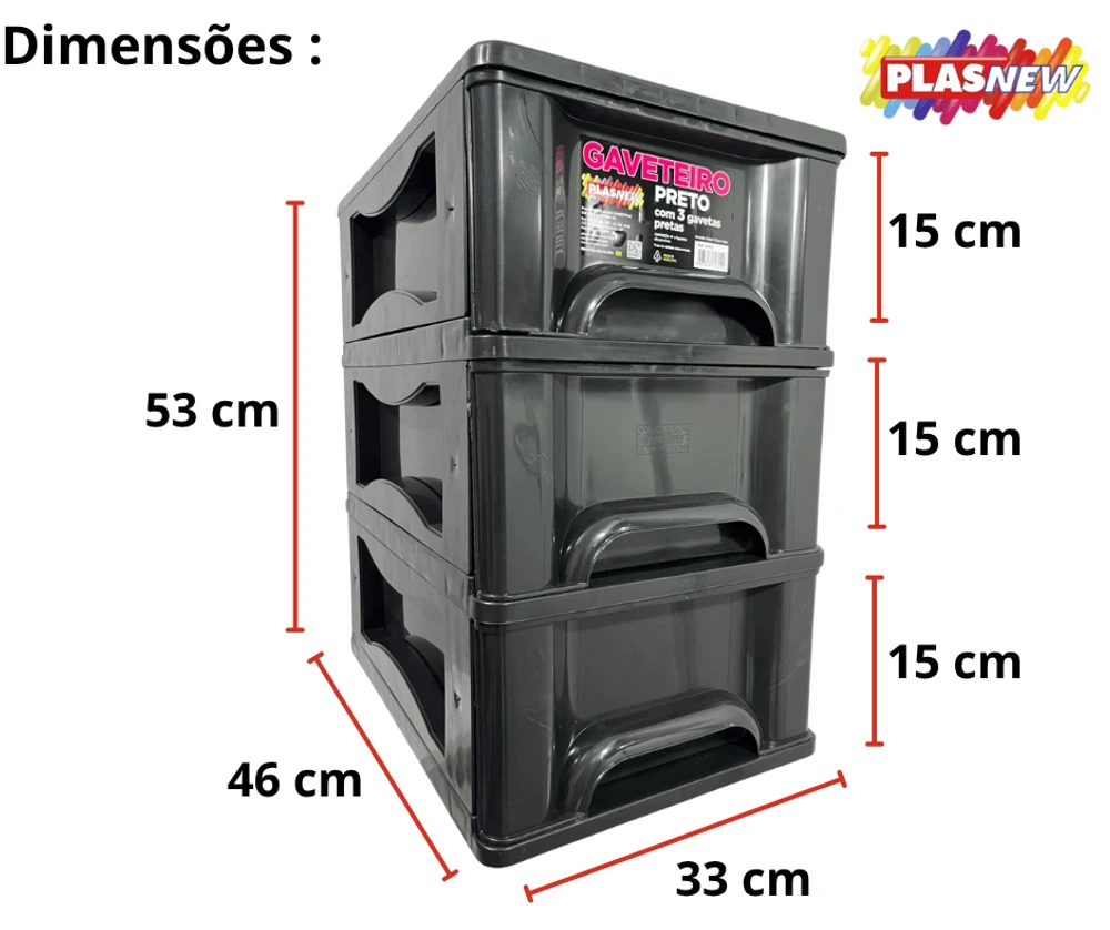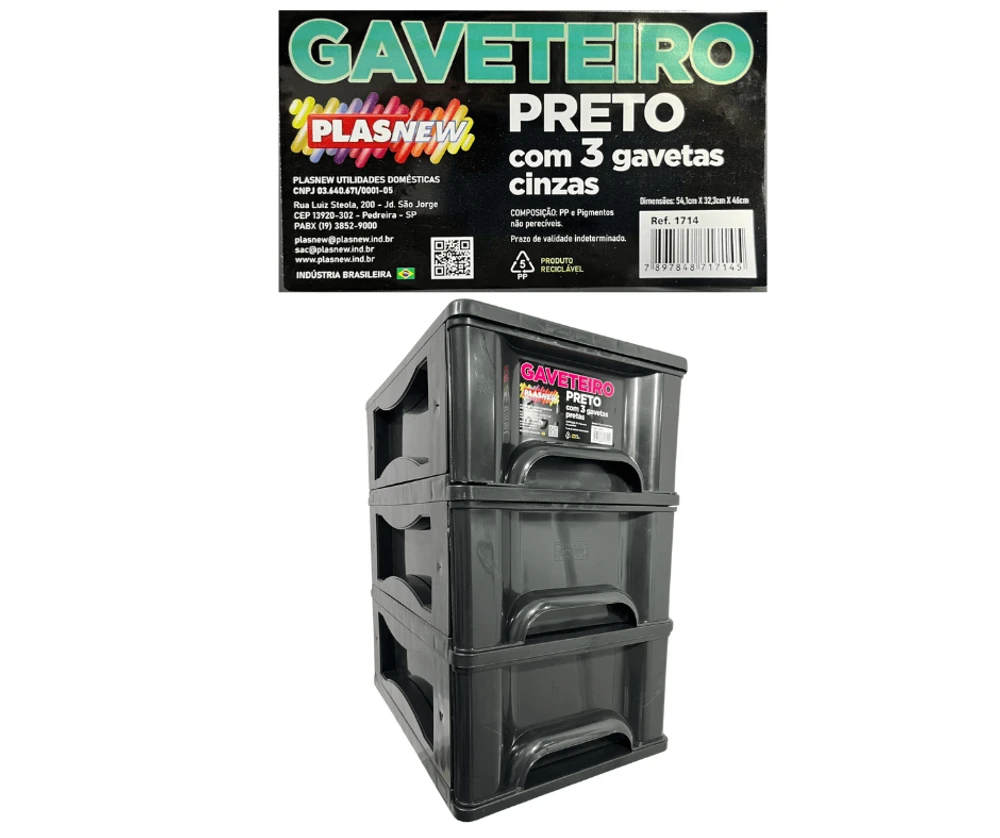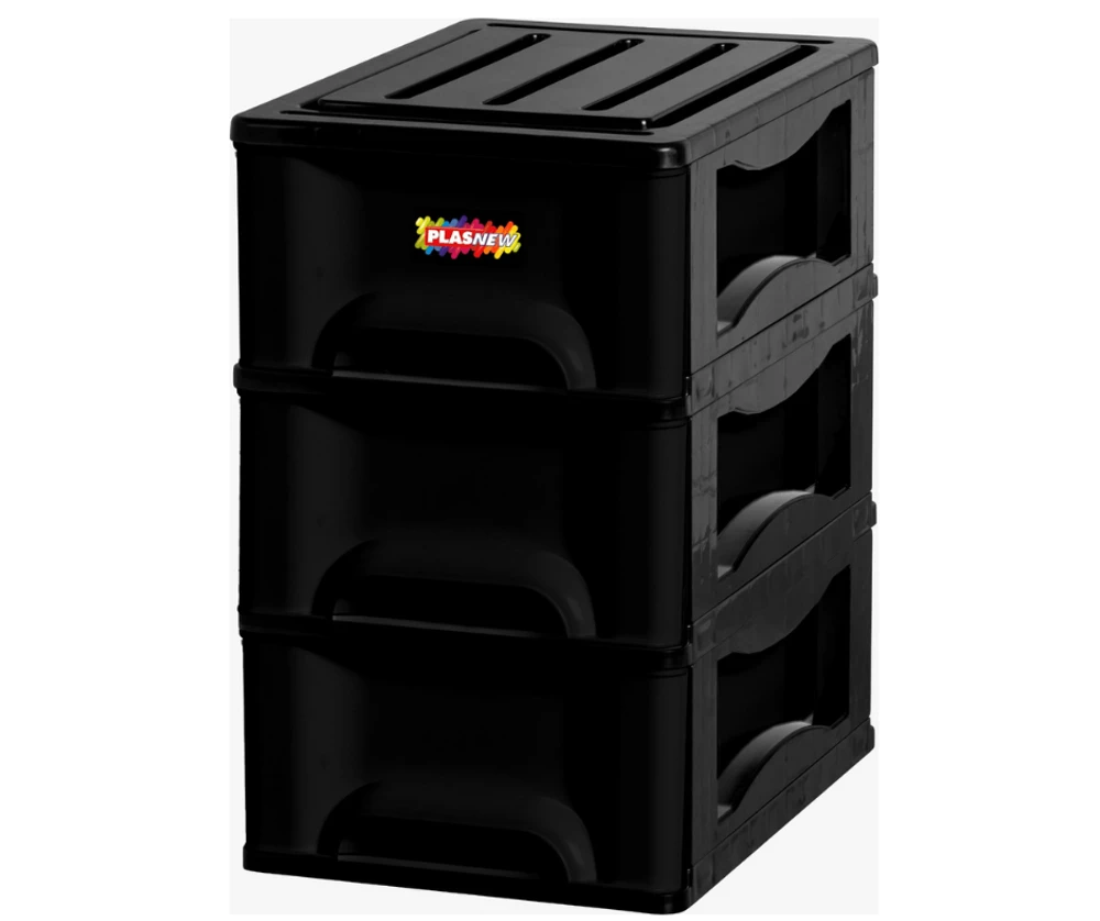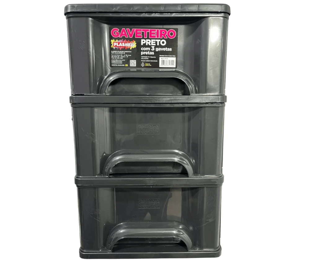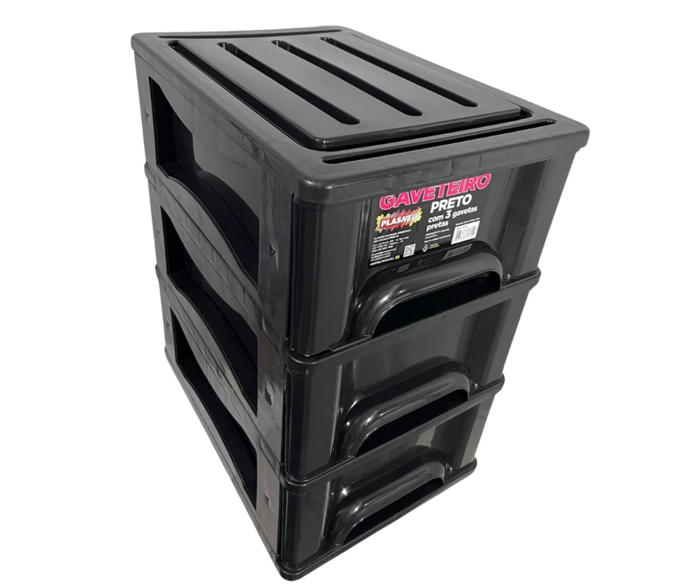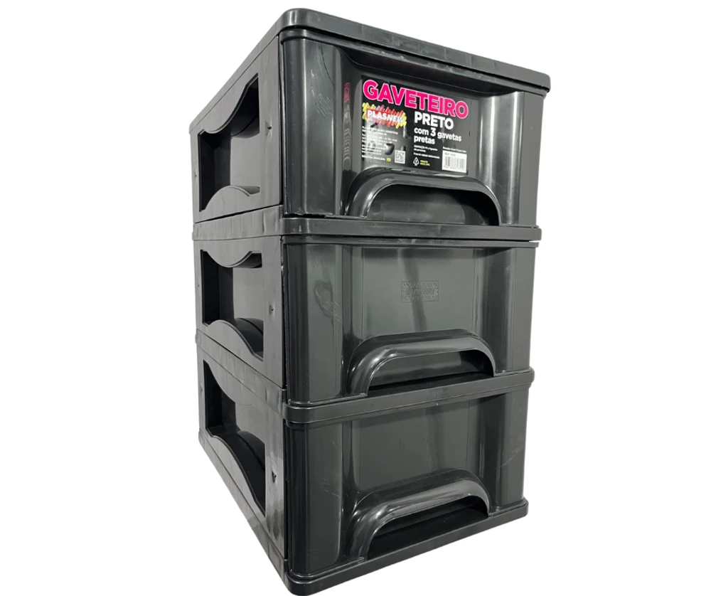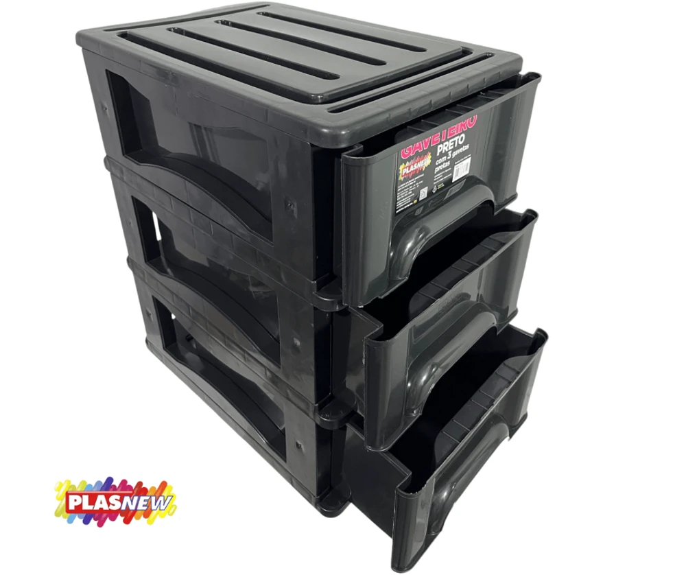 O Gaveteiro Organizador 3 Gaveta Plasnew Preto 1715,é a solução perfeita para manter seus objetos organizados de forma prática e eficiente.