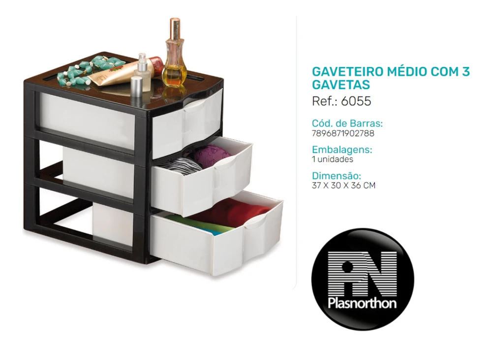 O Gaveteiro Organizador 3 Gaveta Plasnorthon 6055,é a solução perfeita para manter seus objetos organizados de forma prática e eficiente.