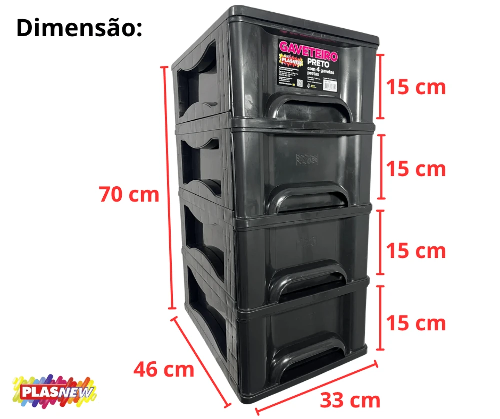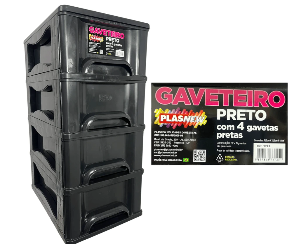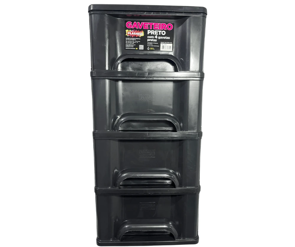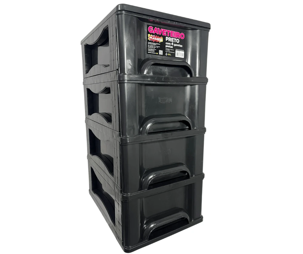 O Gaveteiro Organizador 4 Gaveta Plasnew Preto 1725,é a solução perfeita para manter seus objetos organizados de forma prática e eficiente.