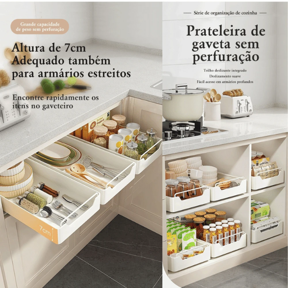 Compre o Gaveteiro Organizador de Aço 40 cm para Cozinhas e transforme seus armários com mais funcionalidade, organização e elegância.
