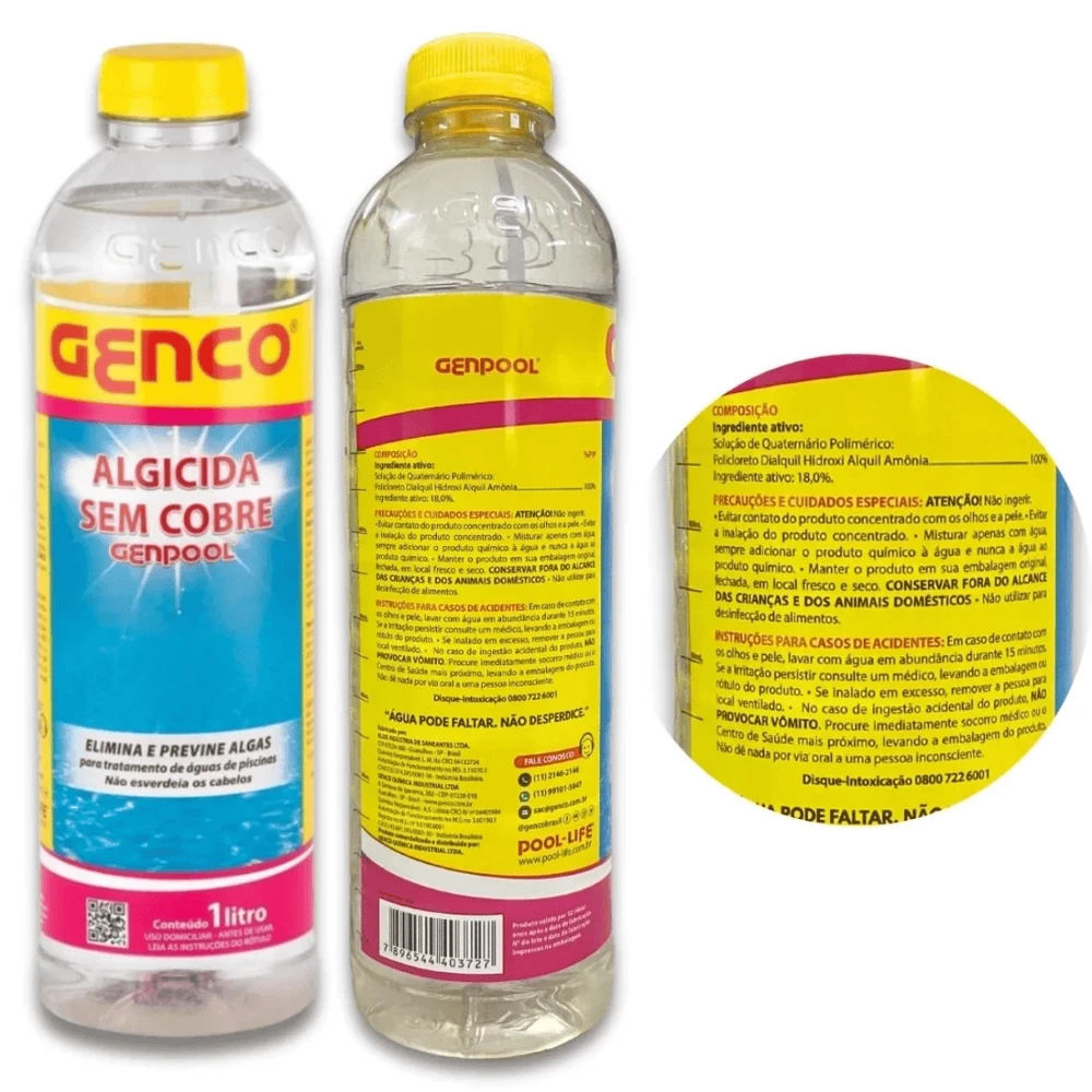 1) Adicionar diretamente à água da piscina 10 a 20 ml de GENPOOL® para cada m3 de água e dose semanal de 10 ml de GENPOOL® para cada m3 de água. Para máxima eficiência GENPOOL® deve ser uniformemente distribuído na água.