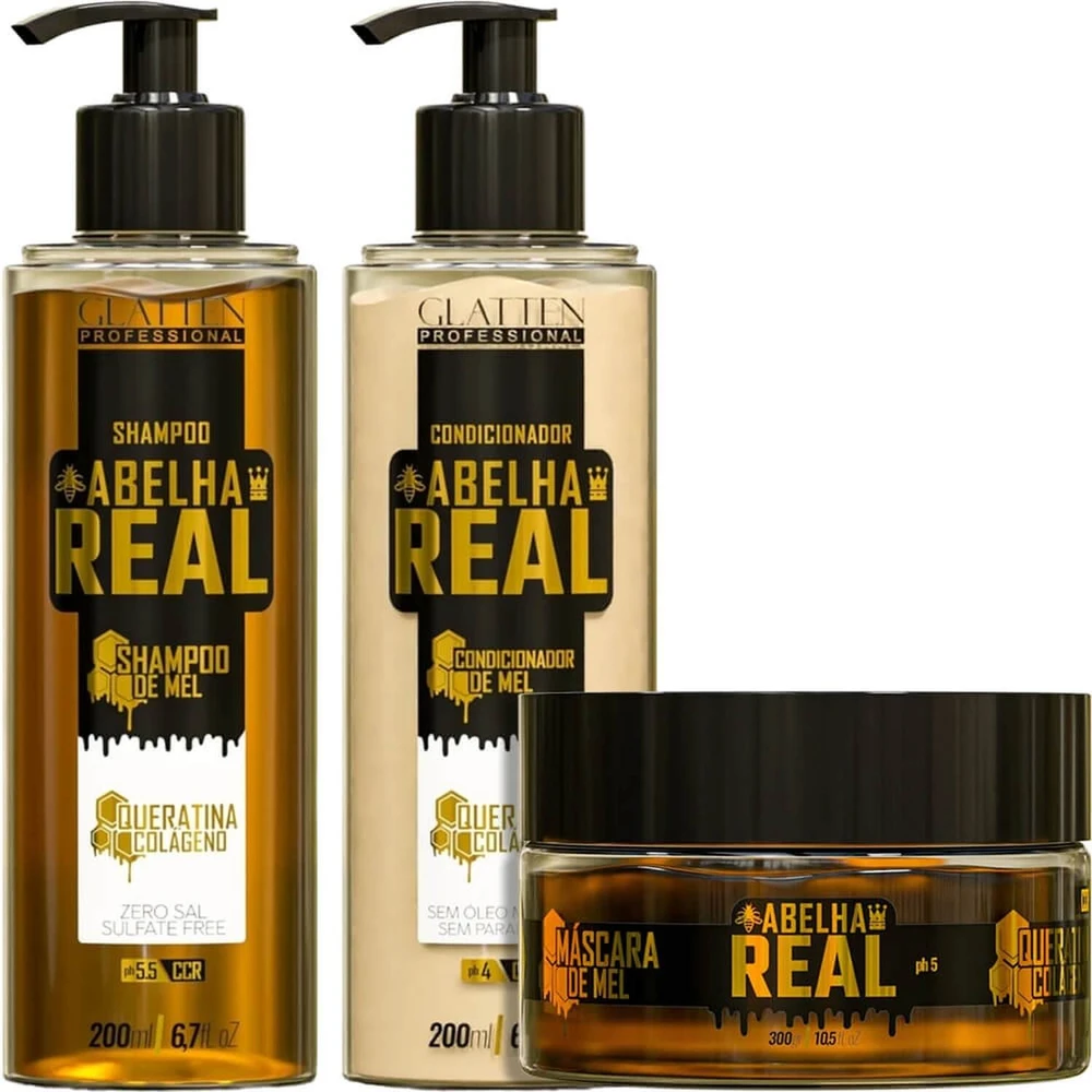 Glatten Abelha Real - Kit de Mel Queratina e Colágeno Trio (3 Produtos)