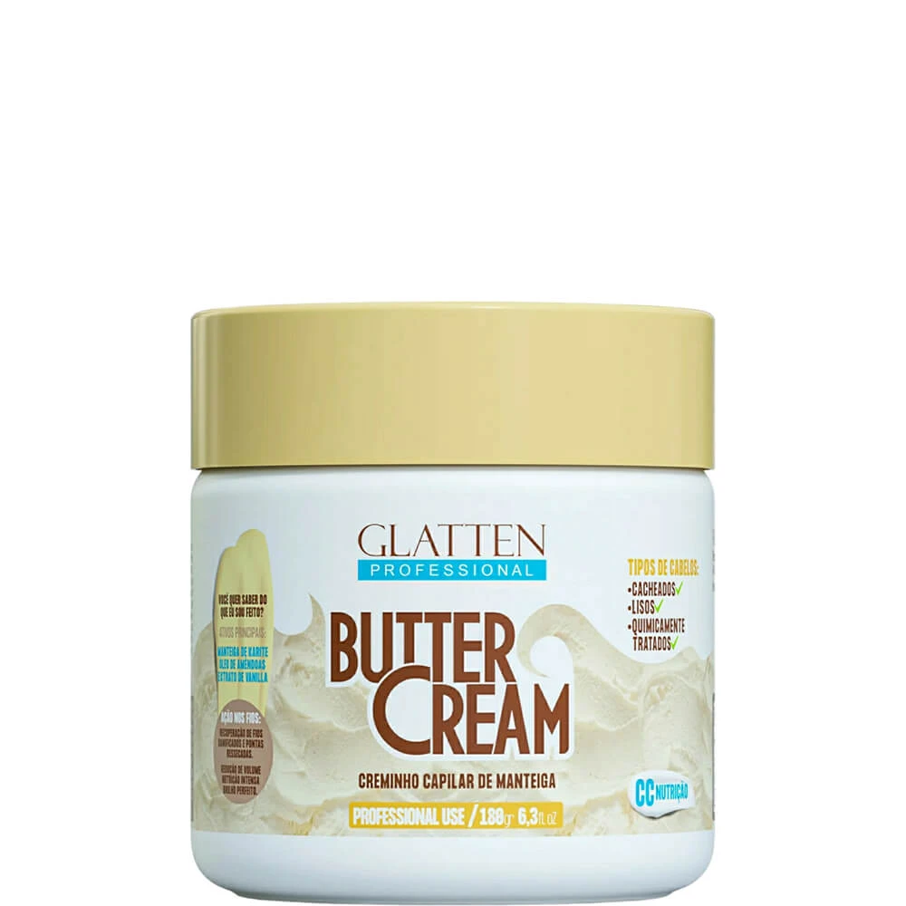 A ButterCream da Glatten é um creminho capilar de manteiga inspirado nas receitas europeias e adaptado a indústria capilar cosmética brasileira. Chega linda e perfeita e com um toque de brasilidade inconfundível.