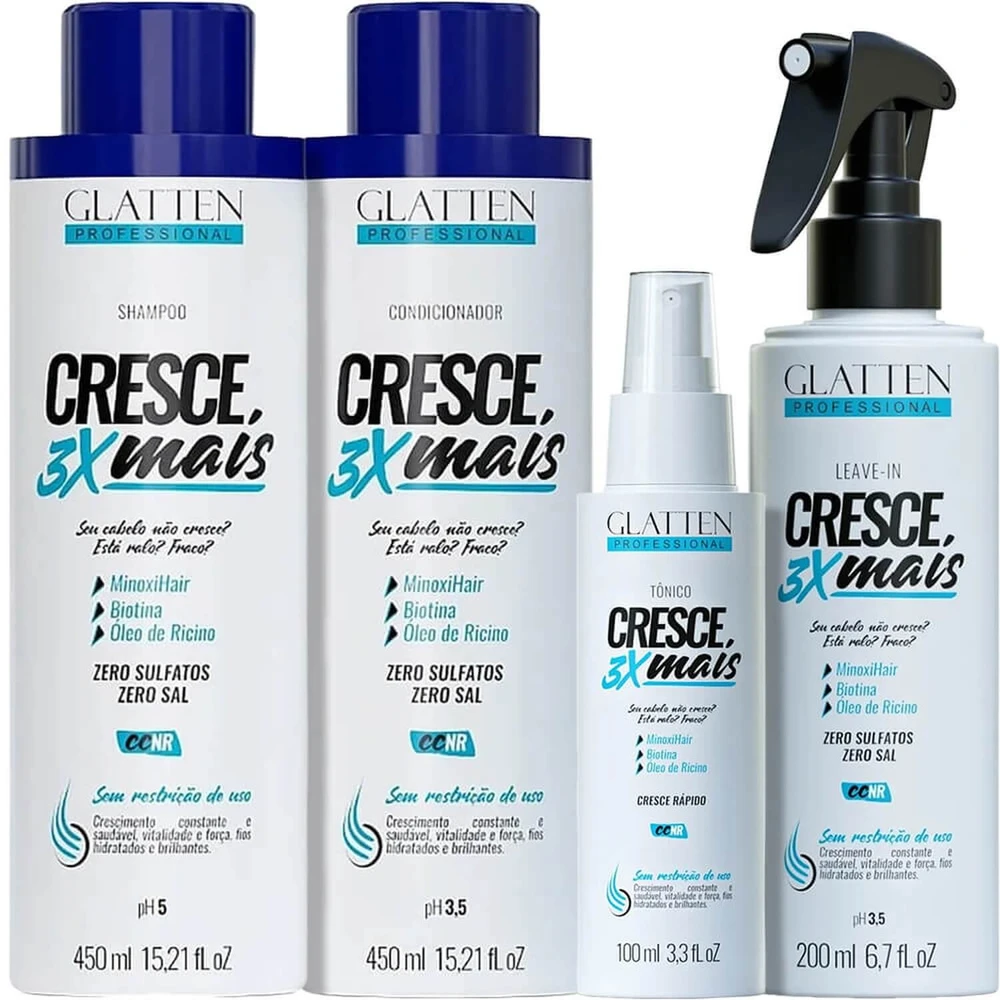 Glatten Cresce 3X Mais - Kit MinoxiHair Home Care Completo (4 Produtos)
