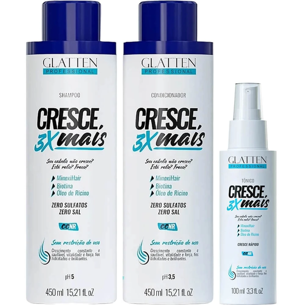 Glatten Cresce 3X Mais - Kit MinoxiHair Home Care Tônico (3 Produtos)