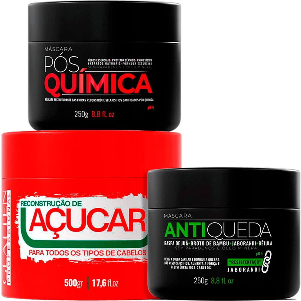 Glatten Professional - Kit Cronograma Capilar Pós Química Antiqueda (3 Produtos)