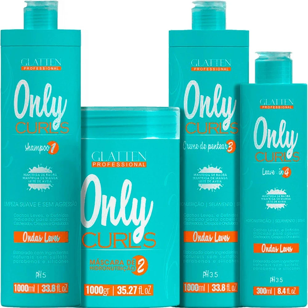 Glatten Professional Only Curls - Kit Cachos Ondas Leves Completo (4 Produtos)