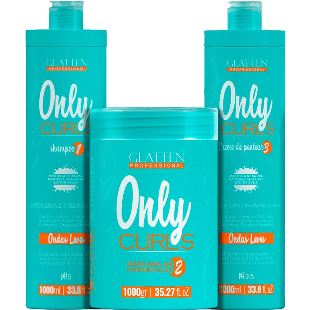 Glatten Professional Only Curls - Kit Cachos Ondas Leves Trio (3 Produtos)