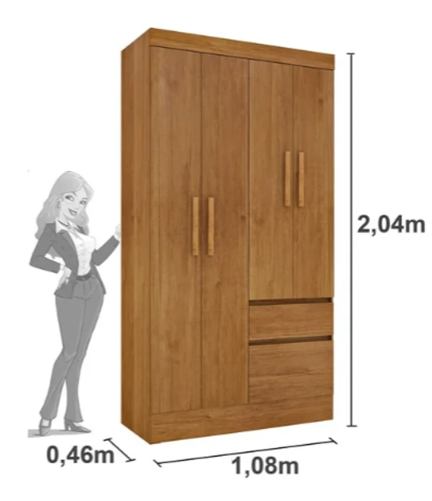 Principais InformaçõesGuarda Roupa Oregon 4 Portas 2 Gavetas Tcil CinamomoPesos e DimensõesAltura (cm)204 cmLargura (cm)108 cmProfundidade (cm)46 cmMateriais e AcabamentosAcabamentoMdp