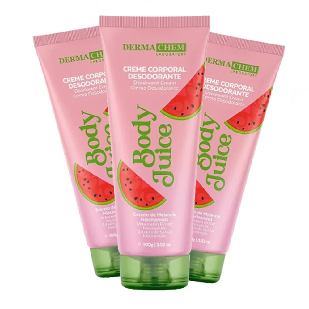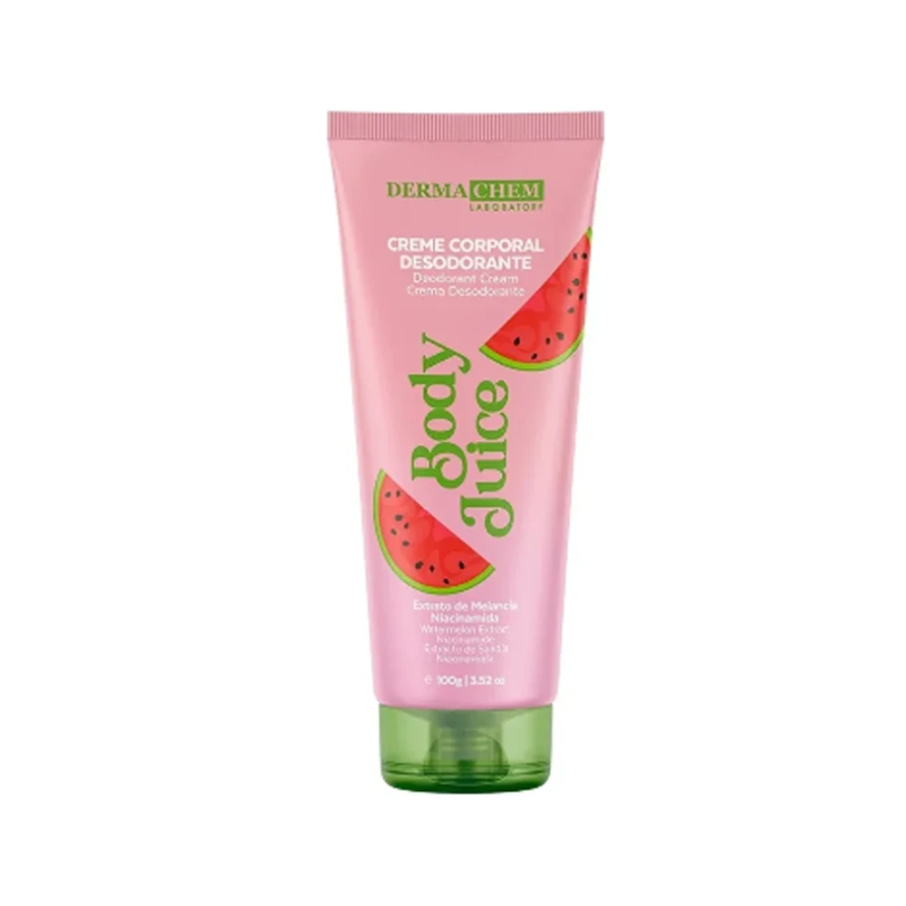 Hidratante Corporal Body Juice Melancia 100ml da Dermachem. Principais benefícios: - Hidratação profunda e duradoura - Ação desodorante que controla odores - Textura leve e rápida absorção - Enriquecido com extrato de melancia e niacinamida - Pele macia, suave e revitalizada As imagens são meramente ilustrativas. As cores dos produtos podem variar devido às características do monitor e do ambiente durante a visualização. instruções sobre cores ou modelos sortidos: Atenção: cores ou modelos sortidos. Caso tenha uma preferência, especifique no campo "Observações do Cliente" durante o checkout ou entre em contato após a compra. Se nenhuma preferência for indicada, o produto será enviado de forma aleatória conforme disponibilidade em estoque. Essas instruções permitem que os clientes expressem suas preferências em relação às cores ou modelos dos produtos, garantindo uma melhor experiência de compra.