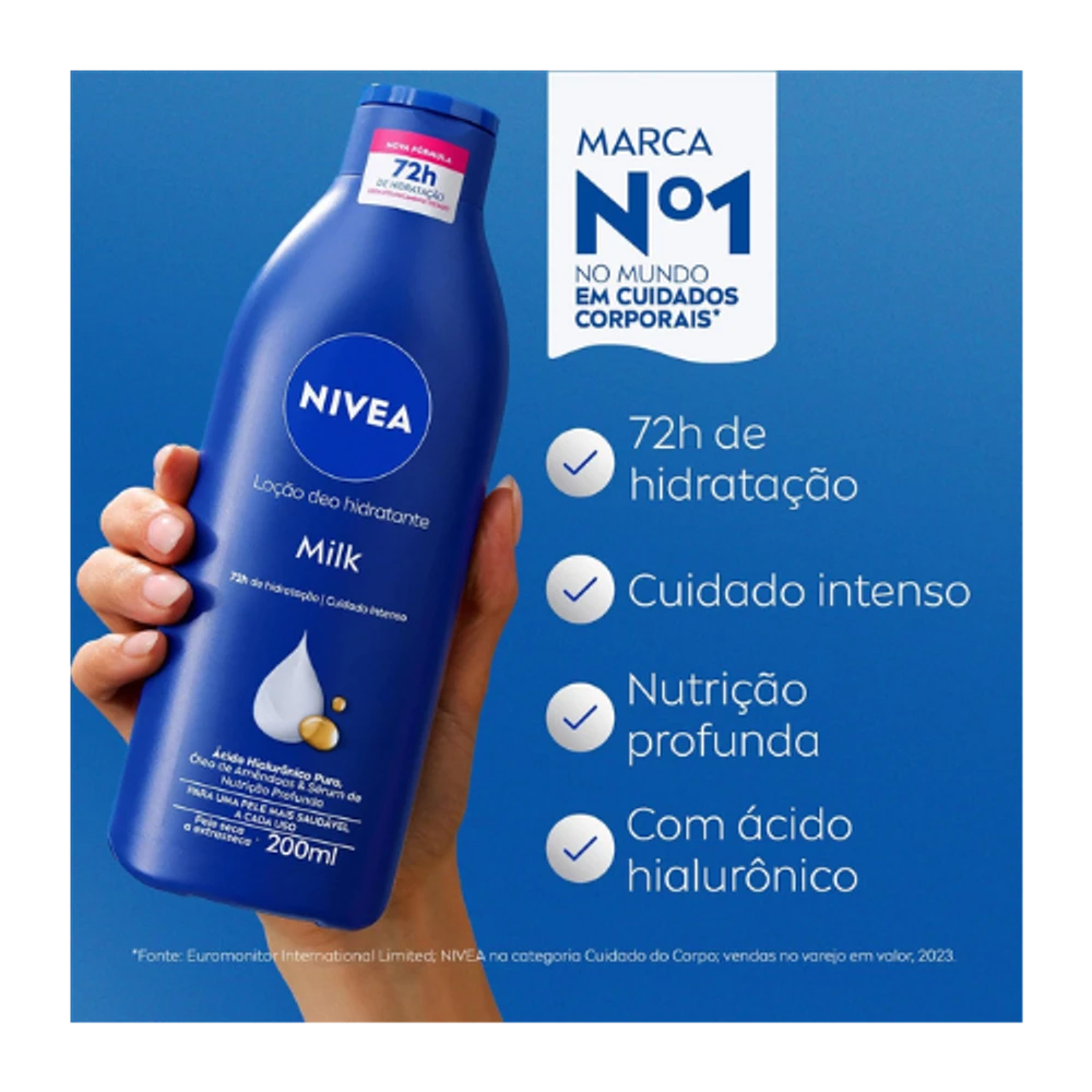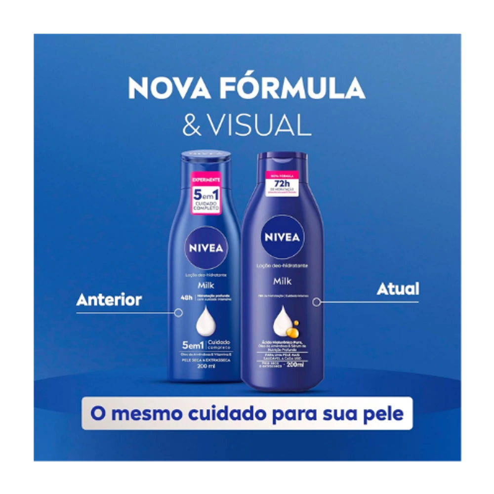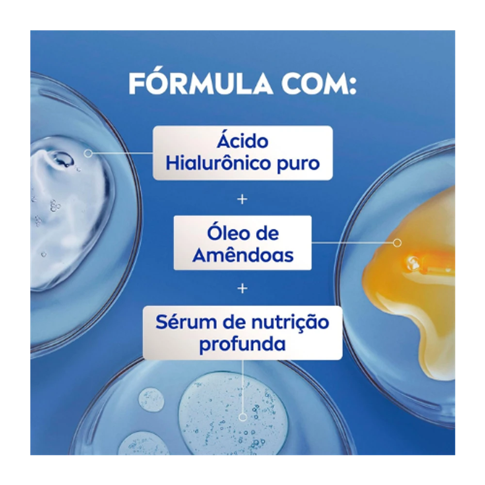 🧴 Descrição Completa O Hidratante Corporal Nivea Óleo de Amêndoas 200ml é a combinação perfeita entre hidratação profunda, nutrição intensa e toque aveludado. Com uma fórmula enriquecida com Óleo de Amêndoas Naturais e Vitamina E, ele mantém a pele hidratada por até 72 horas, prevenindo o ressecamento e garantindo maciez prolongada. A textura cremosa e leve é facilmente absorvida, proporcionando uma sensação imediata de conforto e suavidade — sem deixar a pele oleosa. Além disso, o hidratante realça o brilho natural da pele, deixando-a com um toque sedoso e um perfume delicado e envolvente. Dermatologicamente testado, é indicado para todos os tipos de pele, especialmente as secas e extra-secas, que precisam de nutrição contínua. 🌿 Benefícios Principais Hidratação profunda e contínua por até 72 horas; Com Óleo de Amêndoas e Vitamina E; Melhora a elasticidade e a textura da pele; Rápida absorção, sem deixar oleosa; Fragrância suave e marcante; Indicado para uso diário; Dermatologicamente testado e seguro para todos os tipos de pele. 💧 Modo de Uso Aplique diariamente o Hidratante Nivea Óleo de Amêndoas sobre a pele limpa e seca, massageando suavemente até completa absorção. Use especialmente após o banho para selar a hidratação e manter a pele protegida e macia por mais tempo. 📦 Informações Técnicas Marca: Nivea Tipo: Loção Hidratante Corporal Linha: Óleo de Amêndoas Volume: 200ml Hidratação: Até 72h Principais Ativos: Óleo de Amêndoas Naturais e Vitamina E Textura: Cremosa, de rápida absorção Indicação: Todos os tipos de pele Dermatologicamente Testado: Sim Origem: Nacional