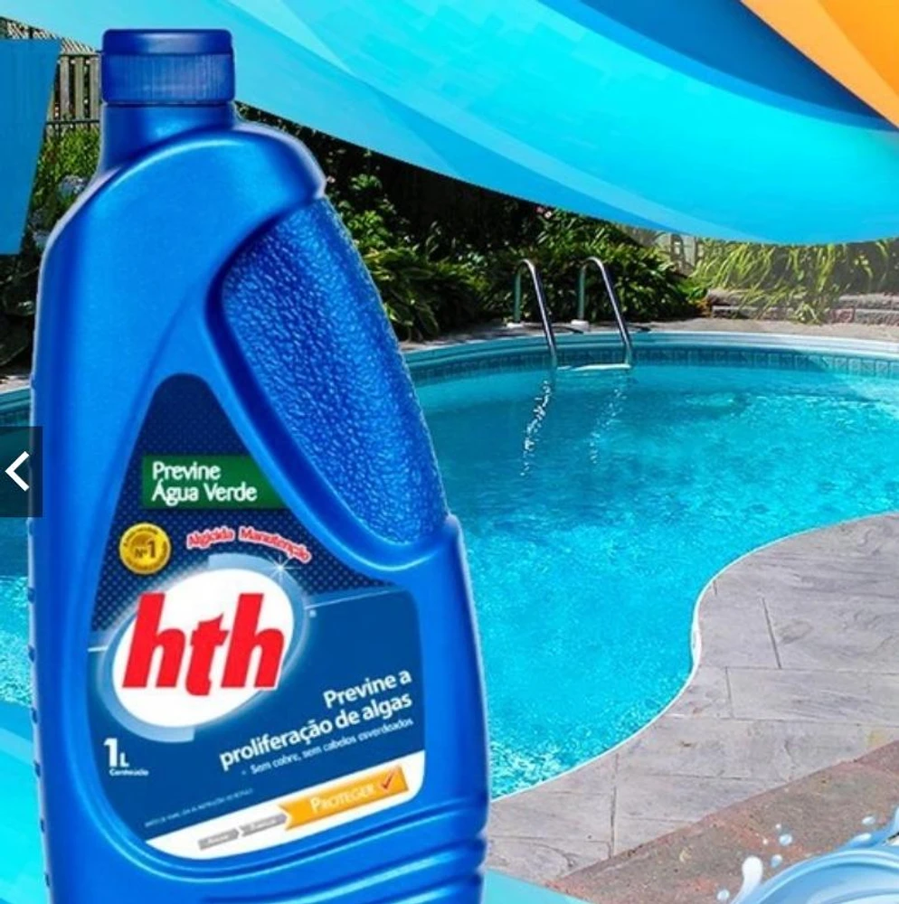 O hth® Previne Água Verde Protege a piscina prevenindo o surgimento de algas. Sua formula avançada é livre de cobre, evita manchas na piscina e cabelos esverdeados.