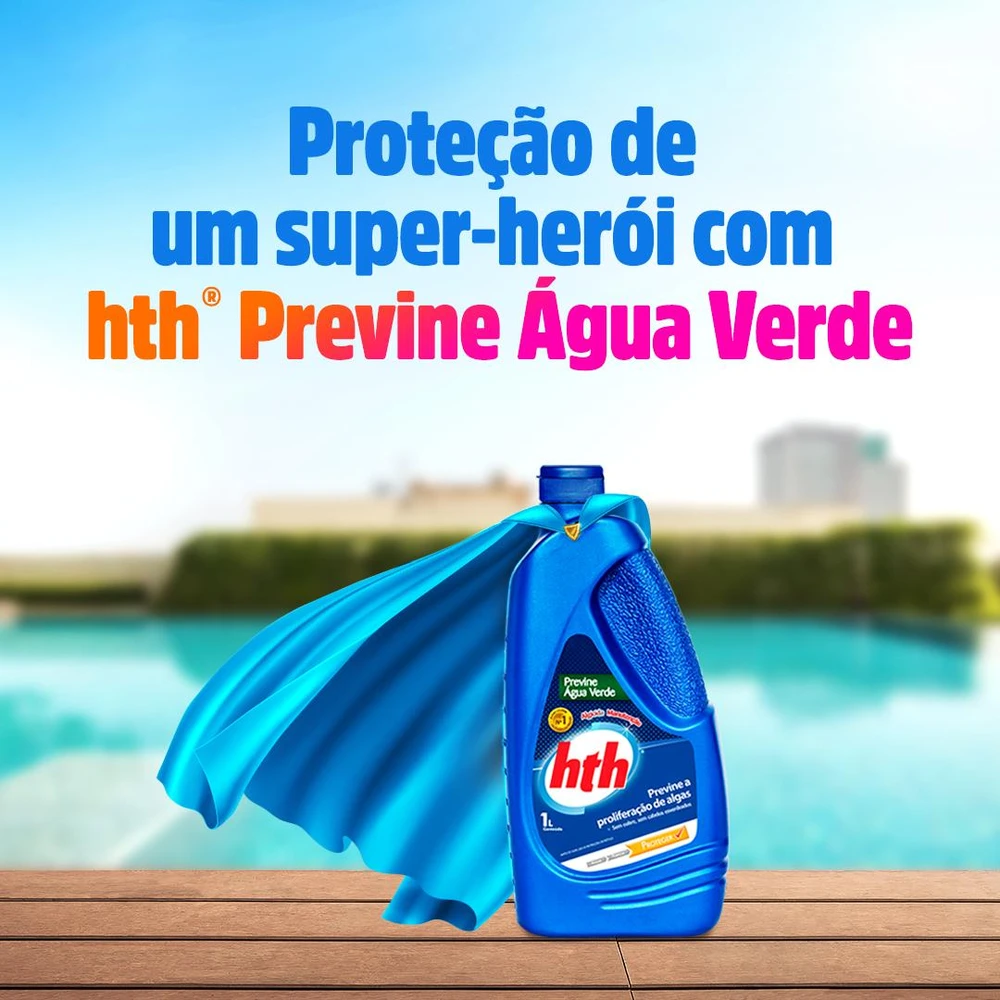 O hth Previne Água Verde ou Algicida de Manutenção, protege a piscina prevenindo o surgimento de algas. Sua fórmula avançada é livre de cobre, o que evita manchas na piscina e cabelos esverdeados.