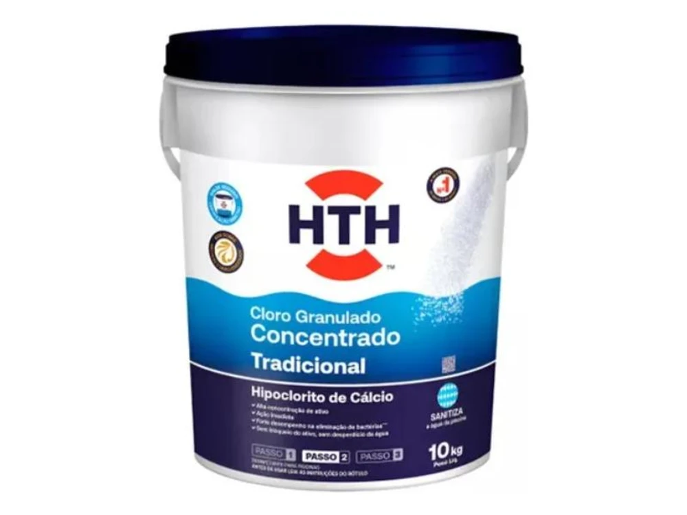 O hth® Cloro Concentrado tradicional possui 65% de cloro ativo e é uma fórmula altamente eficaz na eliminação de bactérias da água da piscina. Além disso, possui Ação Superior do Ativo, que significa que todo o cloro está disponível para agir na purificação da água. Ideal para piscinas com grande fluxo de pessoas.