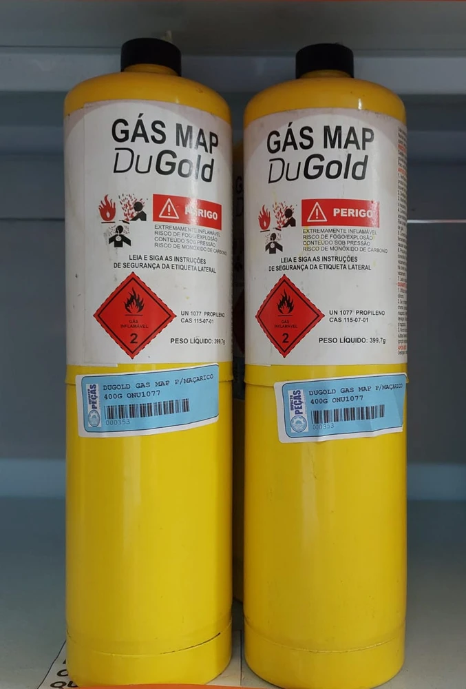 HULTER GAS MAP P/MAÇARICO 400G ONU1077 CARTUCHO GÁS MAP PARA MAÇARICO HULTER 400G ONU1077 MODELO: ONU1077FABRICANTE: DUGOLDINFLAMAVEL: SIMCAPACIDADAE: 400GGARANTIA: 3 MESESTEMPERATURA: 2000 ºCTIOBSERVAÇÕES:CARTUCHO DESCARTAVEL, CLASSE DE RISCO:2 SUB-CLASSE: 2.1