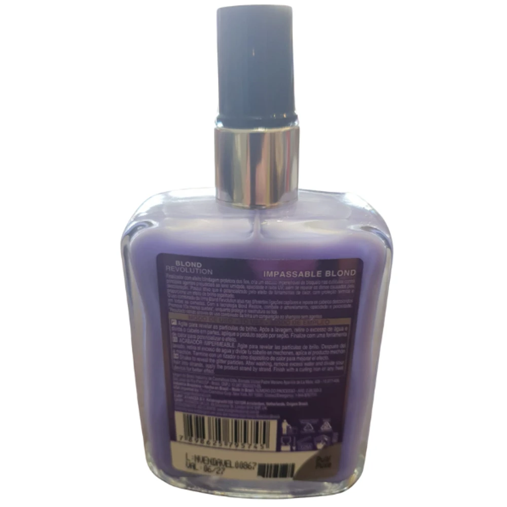 Aplicação: Com os cabelos limpos e úmidos, aplique o Impassable Blond mecha por mecha, distribuindo uniformemente o produto pelos fios.