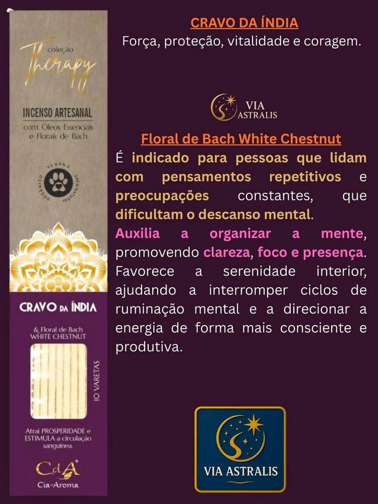 Coleção Therapy - Incenso Vareta Cravo da Índia e Floral de Bach WHITE CHESTNUT - CDA
