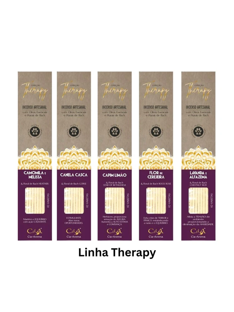 A Coleção Therapy é produzida com óleos essenciais e Florais de Bach. Produzidos artesanalmente, natural, sem adição de carvão.
