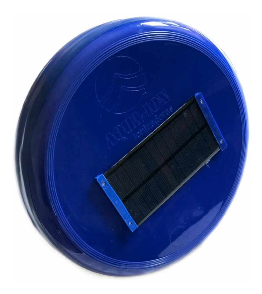 Ionizador íons de cobre+prata. Você irá eliminar também o uso de algicidas e clarificantes. Dessa forma, comprando o Ionizador de piscinas você terá uma economia de 80 a 90% em produtos químicos e sua piscina continuará com a água limpinha. Para que o Ionizador tenha total eficácia, são necessários pelo menos 30 dias de uso continuo, nesses 30 dias você deverá reduzir 80% o uso do cloro, até que aos 30 dias não será mais necessário acrescentar o cloro à água. A necessidade de limpeza da piscina diminui muito, você pode passar algumas semanas sem limpar que a água não vai apodrecer. (mais economia com o piscineiro, que pode diminuir a frenquência). Quer mais vantagem? Ele é sustentável! Por ser alimentado por energia solar, ele não consome energia, e por deixar sua piscina livre de produtos químicos, a natureza não sofre. Agora você deve estar se perguntando como ocorre essa mágica, calma, não é mágica, eu vou explicar: O Ionizador Solar gera ions de cobre+prata através da reação química entre os polos da célula solar e os eletrodos de cobre+prata do ionizador. Os ions de cobre+prata são potentes bactericidas e germicidas, mais eficazes que o cloro na desinfecção da água da piscina. O ion de cobre+prata não evapora com a luz solar e são cumulativos. Tornando-se mais eficazes com o passar do tempo. A ação dos ions pode ser sentida em uma semana, e você pode parar de usar o cloro totalmente. Elimina 100% do uso do cloro. dos algicidas e clarificantes. Vou enumerar alguns benefícios: Não prejudica a pele; Não causa irritações na pele e nos olhos; Não resseca o cabelo; Não deixa os cabelos verdes; Não desbota a cor da piscina; Não desbota as roupas de banho; Não resseca o vinil; Elimina os vírus, bactérias e fungos; Adeus micoses; Não deixa a água com cheiro; Não requer instalação, é só colocar na água, ele flutua como a margarida de cloro.