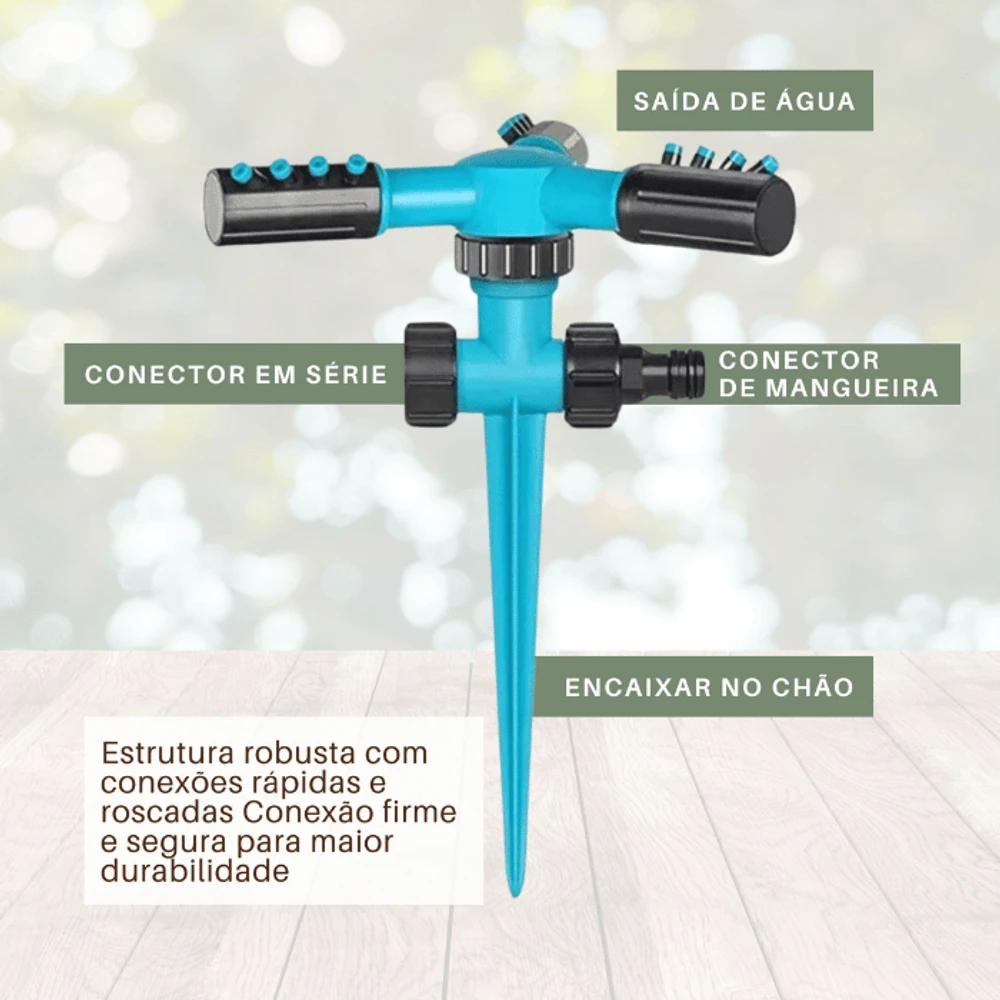 Com esse irrigador rotativo, sua área verde estará sempre bem cuidada – com mais praticidade, eficiência e economia!