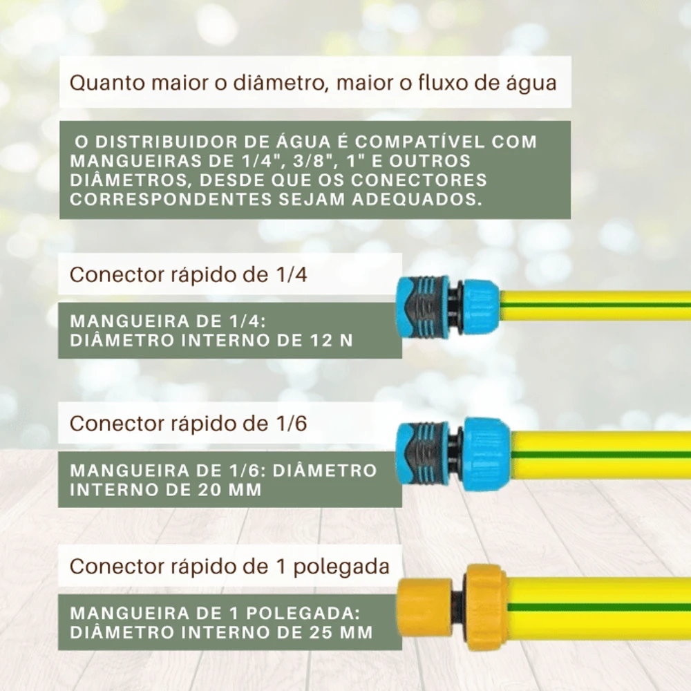 Compatível com vários tipos de mangueira: 1/4", 3/8", 1" e conexões rápidas