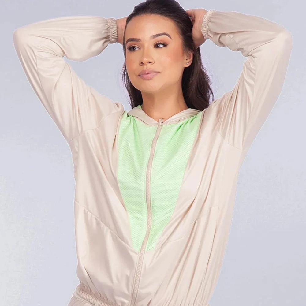 Jaqueta prática e funcional, ideal para quem busca conforto e liberdade de movimento. Confeccionada em um tecido de poliéster com brilho acetinado e caimento único, possuí uma ótima respirabilidade, é perfeito para atividades físicas, evitando superaquecimento, e ao mesmo tempo protege contra os ventos frios no inverno!! Possui zíper frontal para fácil ajuste e bolsos laterais. Possui detalhes em um tecido de telinha na parte frontal e na parte interna do capuz, um detalhe que traz mais estilo a peça!