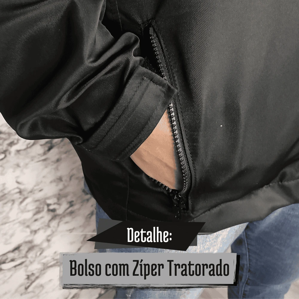 - Possui Bolso no Peito com Zíper Tratorado: Segurança para guardar objetos pessoais