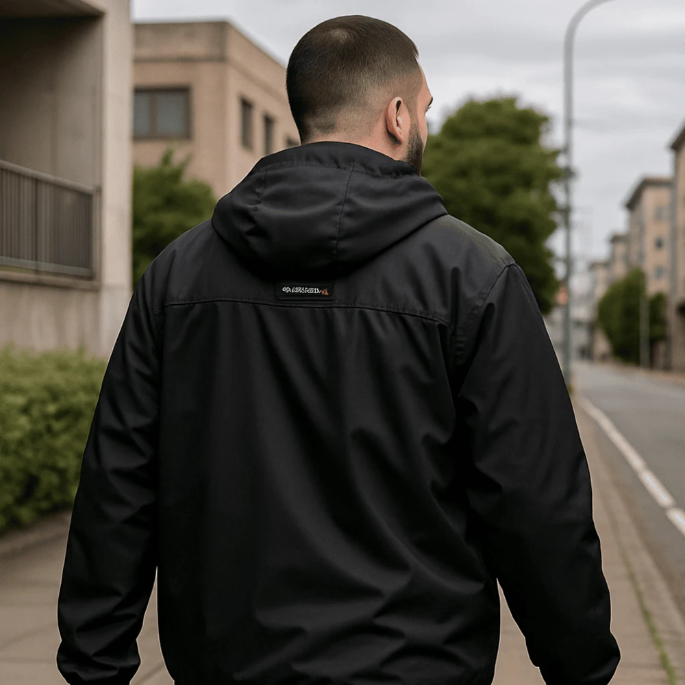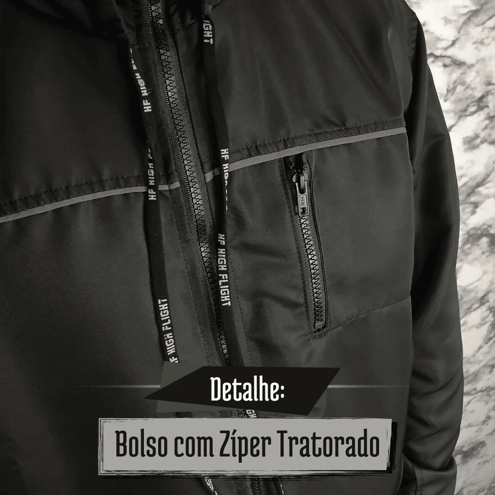- Desenvolvida para unir proteção e praticidade no dia a dia. Conta com bolsos com zíper na lateral e no peito, oferecendo segurança para guardar objetos pessoais. O capuz ajustável garante mais cobertura em dias de vento ou garoa, enquanto os punhos com velcro e elástico, assim como o elástico na bainha, permitem melhor encaixe ao corpo e bloqueiam a entrada de ar. Na parte frontal, a camada dupla reforça a proteção contra o frio. Confeccionada em tecido resistente à água, é ideal para enfrentar chuviscos e manter o conforto.