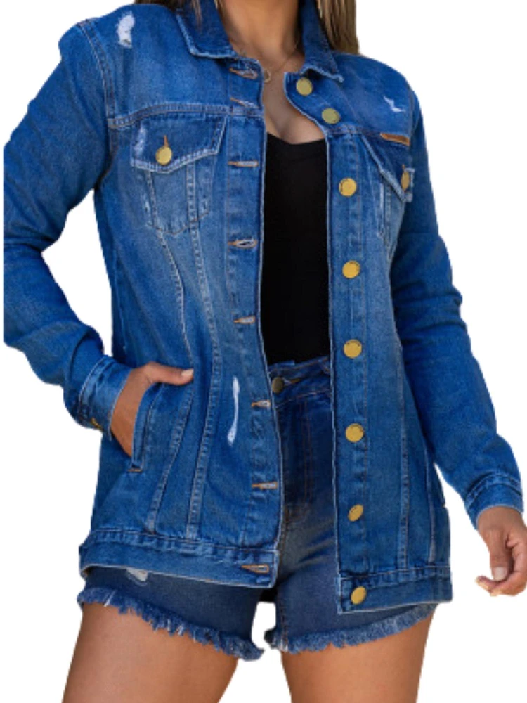 Jaqueta Feminina Jeans Max Destroyed Revanche 51605
