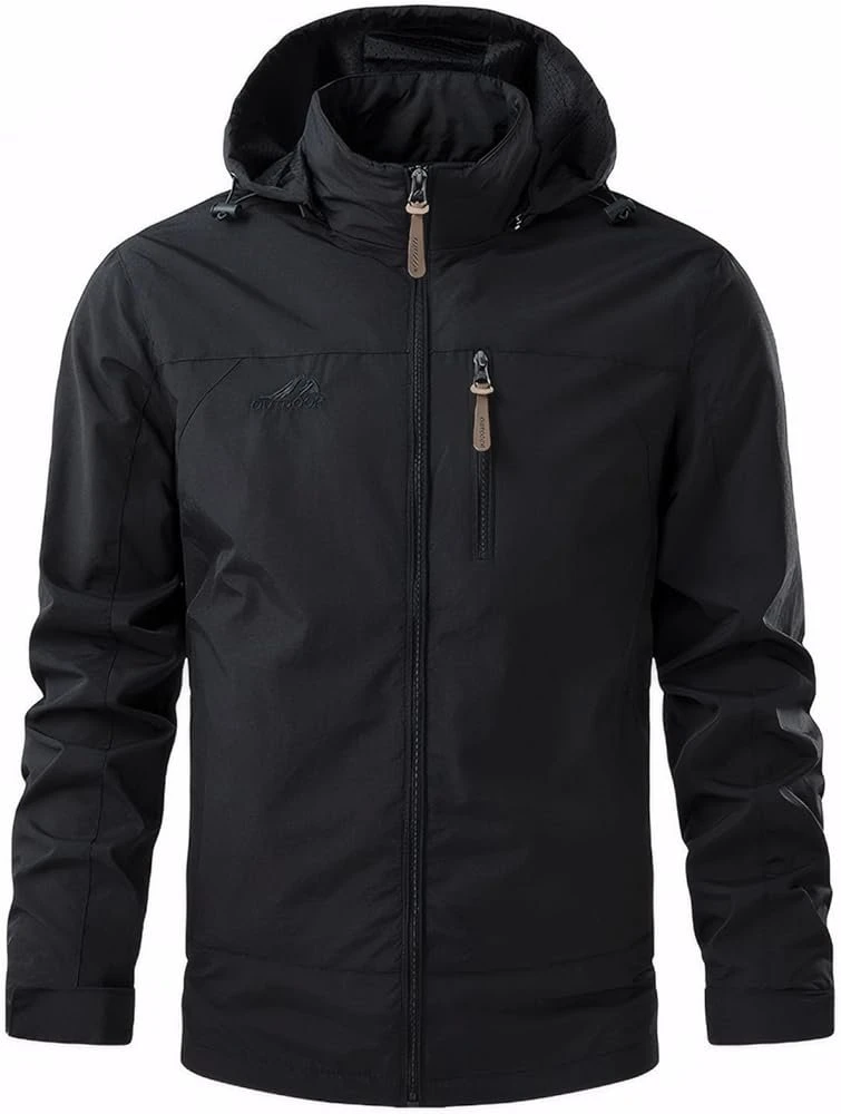 Jaqueta masculina corta-vento jaqueta leve com capuz softshell primavera outono impermeável