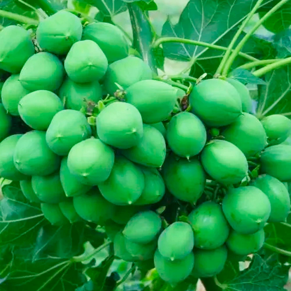 Jatropha curcas, popularmente conhecido como Pinhão manso, uma planta versátil e de rápido crescimento, ideal para projetos sustentáveis e agrícolas. Estas sementes são perfeitas para quem busca produzir biodiesel natural, proteger o solo contra erosão ou criar uma fonte renovável de matéria-prima.