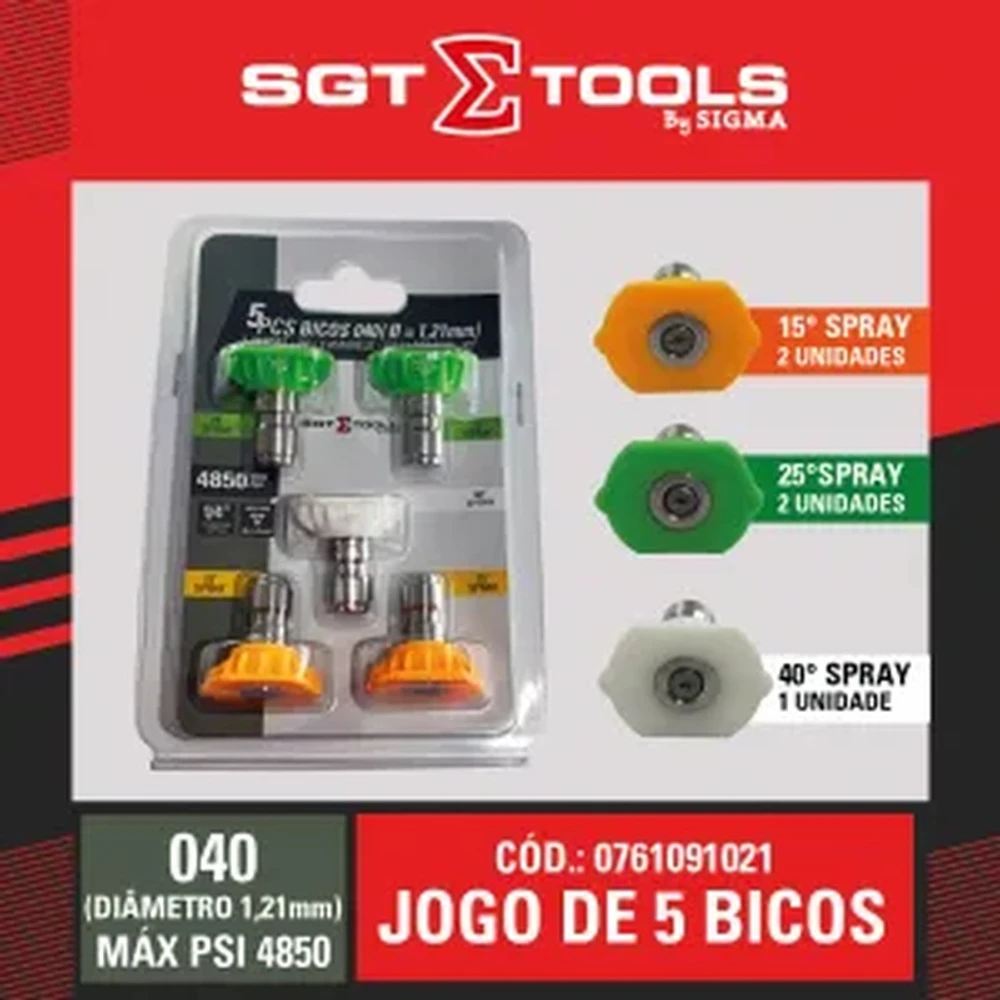 Jogo 5 Bicos 040 (DIAM. 1,21MM) 2 VERDES 25°, 2 AMARELOS 15°, 1 BRANCO 40° Sigma Tools