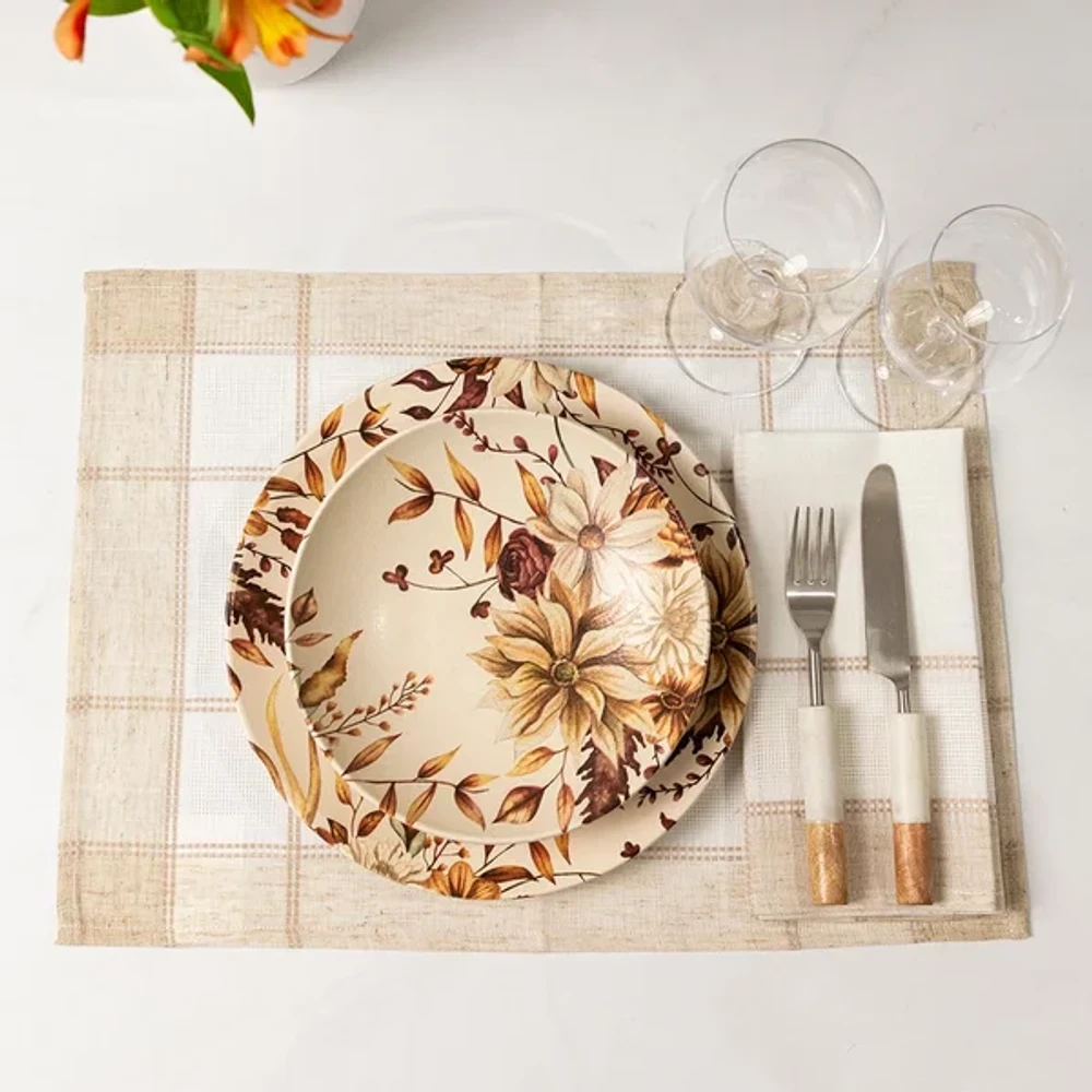 Modo de uso: Posicionar sobre a mesa, apoiando pratos e talheres para proteger a superfície e valorizar a apresentação.
