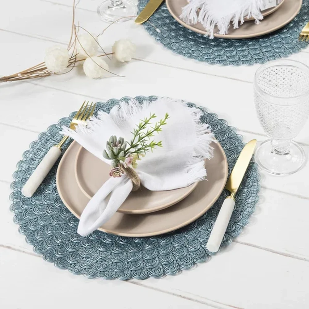 Modo de uso: Posicionar sobre a mesa para apoiar pratos e talheres, protegendo a superfície e valorizando a decoração.