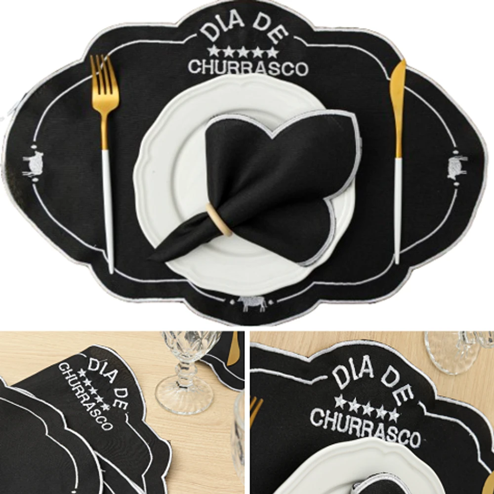 Jogo Americano Churrasco Bordado 12 Lugares 24 pçs Mesa Posta