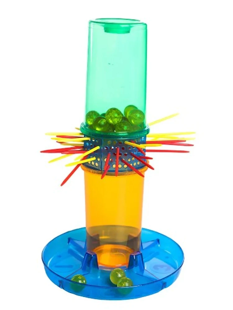 Jogo Cai não Cai Um emocionante teste de controle e equilíbrio! Puxe uma vareta para fora do tubo, mas com cuidado! Se a bolinha cair ela vai para sua divisão, e ao final do jogo, quem tiver menos bolinhas na sua divisão, é o vencedor! É emoção e diversão do começo ao fim! Recomendada: Para crianças a partir de 5 anos de idade.