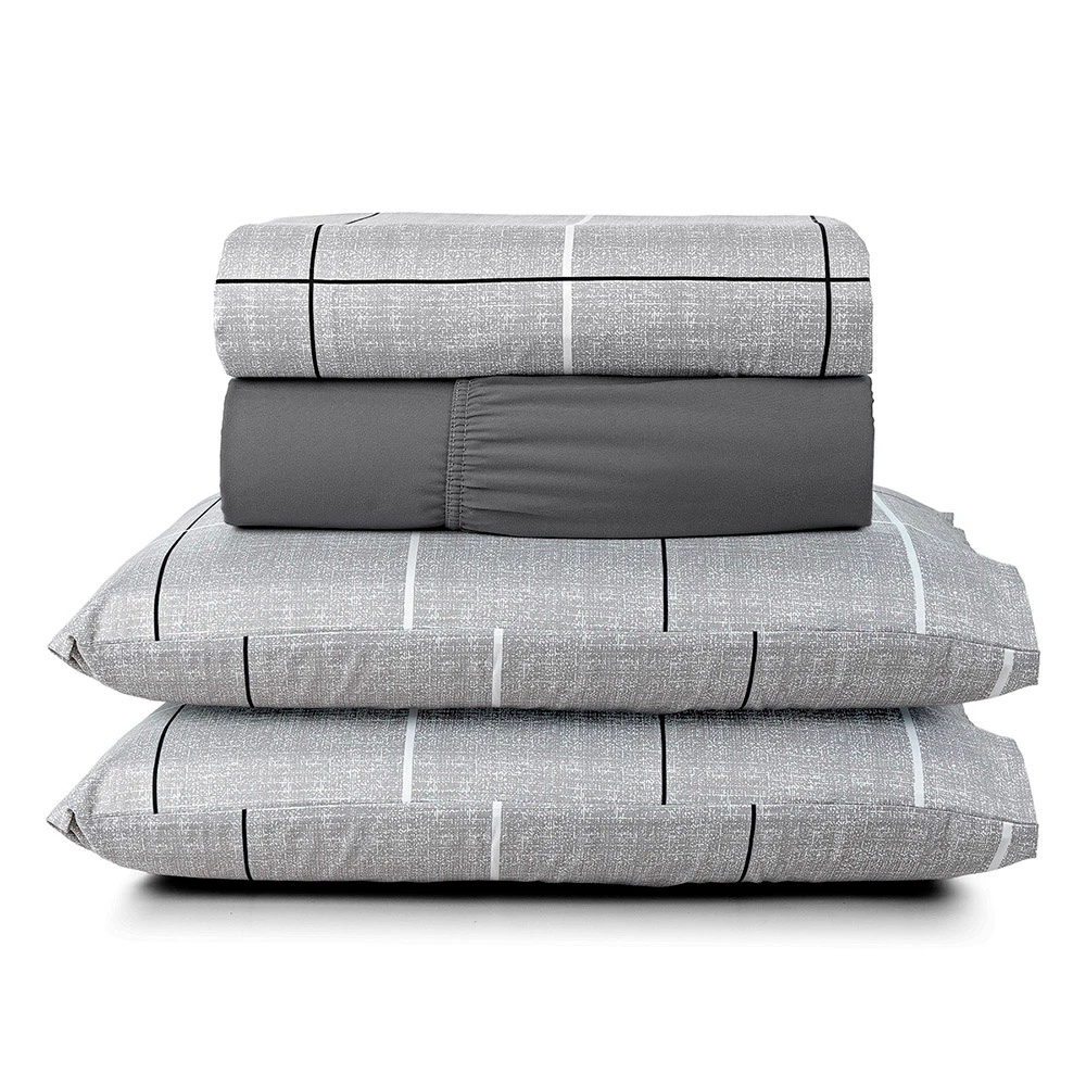 Jogo Cama Lençol Celi Queen Micropercal Estampado 200 Fios 4 Peças Xadrez Grid Cinza