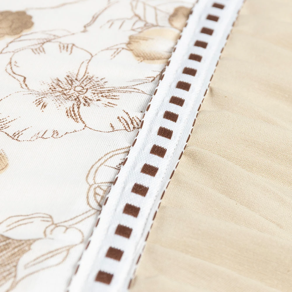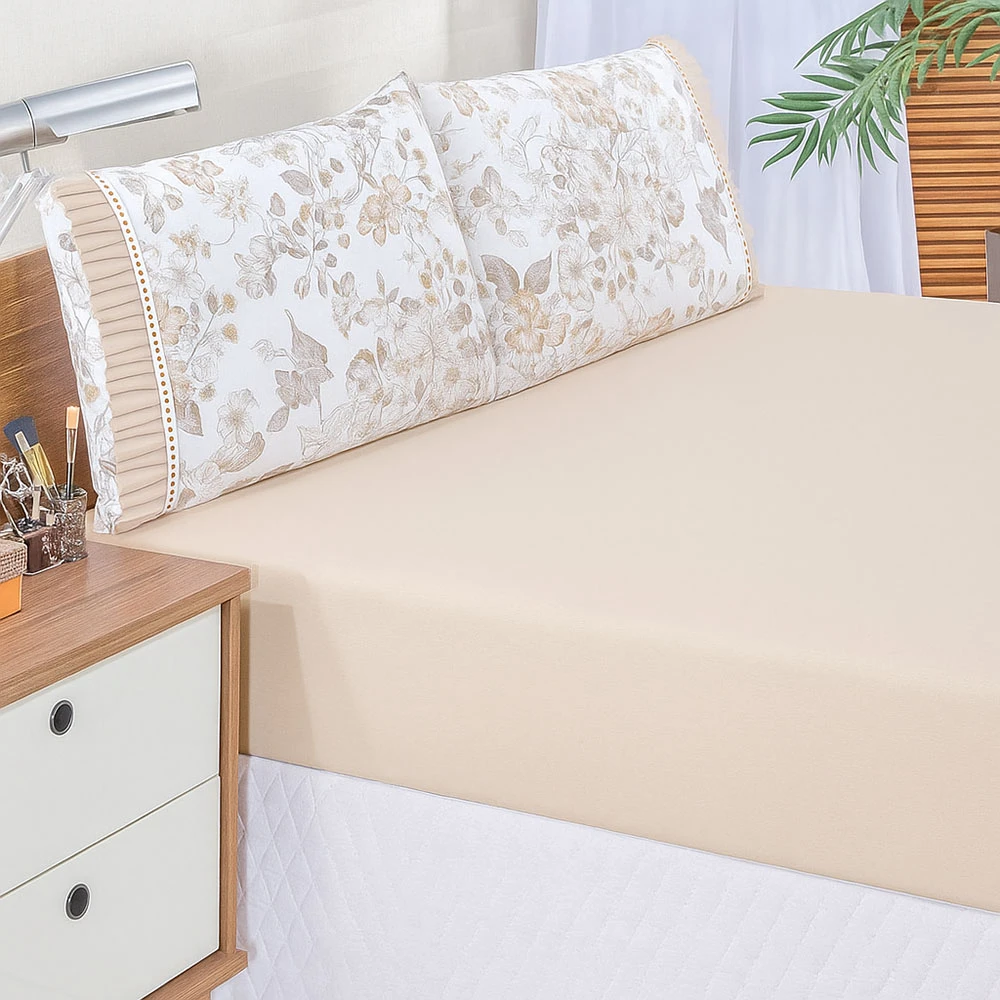 Jogo Cama Lençol Fiore Queen Estampado 180 Fios 100% Algodão com Babadinho 3 Peças Bege Floral