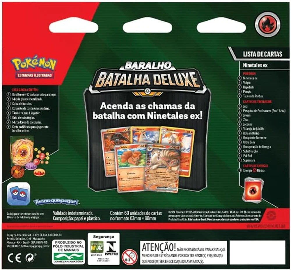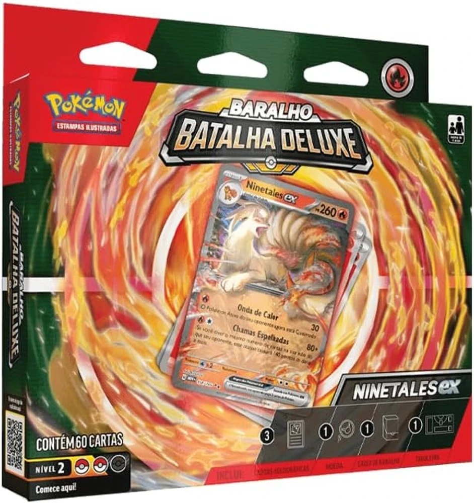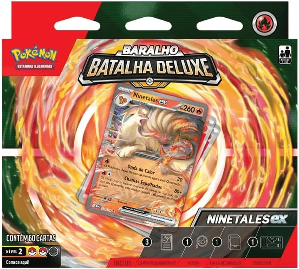 O Deck de Batalha Deluxe Ninetales e Zapdos da Copag reúne dois Pokémon icônicos em um conjunto estratégico e envolvente, ideal para quem deseja elevar o desempenho nas partidas do Pokémon TCG. Com cartas cuidadosamente selecionadas, o deck oferece equilíbrio entre ataque, defesa e construção tática, permitindo que jogadores iniciantes ou experientes aproveitem ao máximo cada duelo. A presença de Ninetales e Zapdos traz um charme especial ao conjunto, combinando beleza, força e versatilidade em uma única experiência.