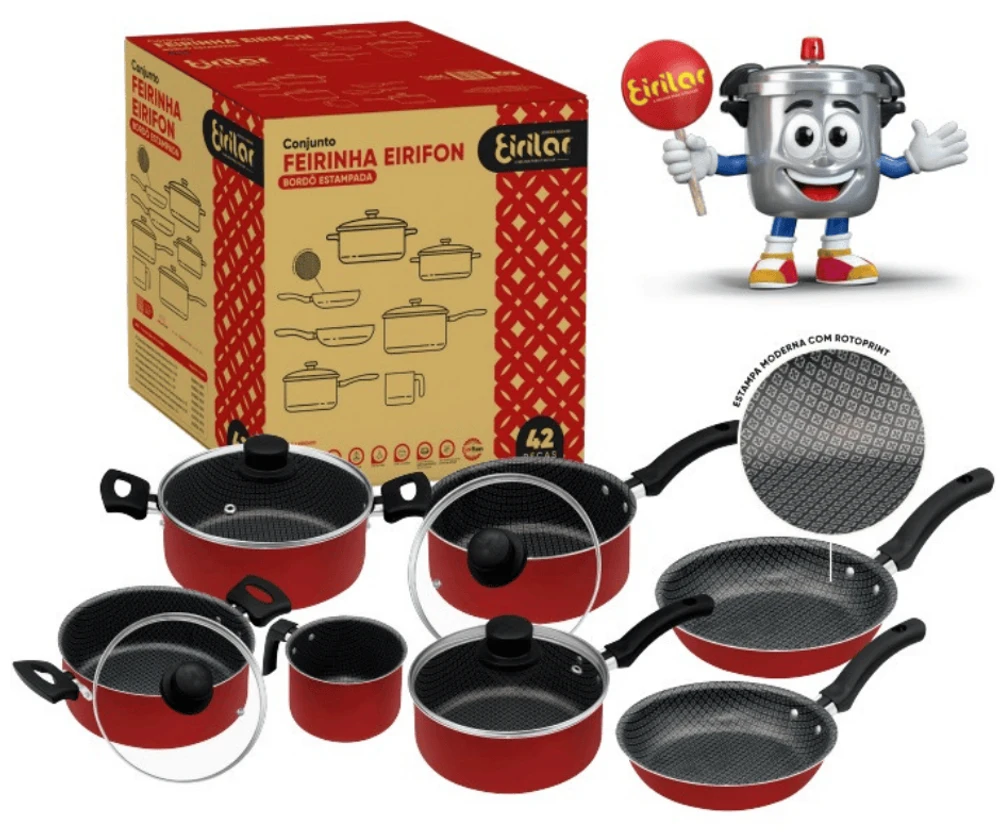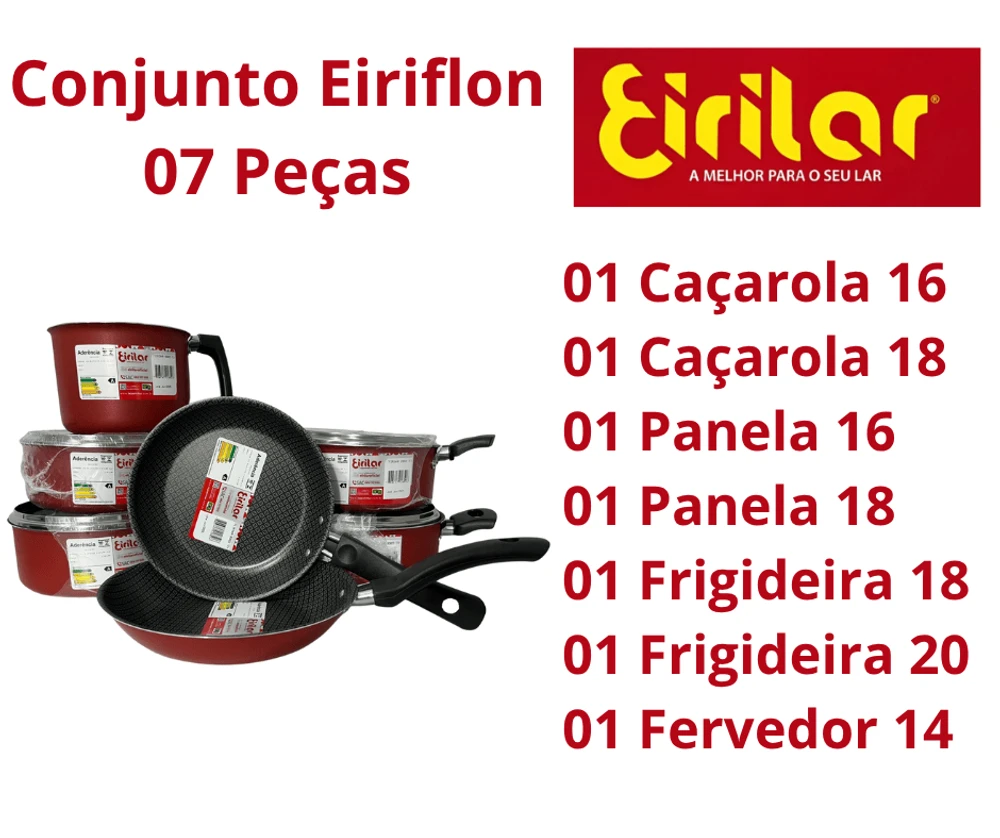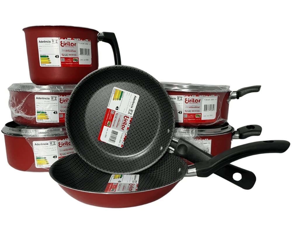 Jogo Conjunto de Panelas Eirilar Eiriflon Vermelha 07 peças.