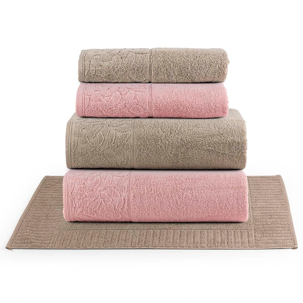 Jogo de Banho Blume Toalhas Macias 100% Algodão Fio Penteado 5 Peças Rosa e Bege