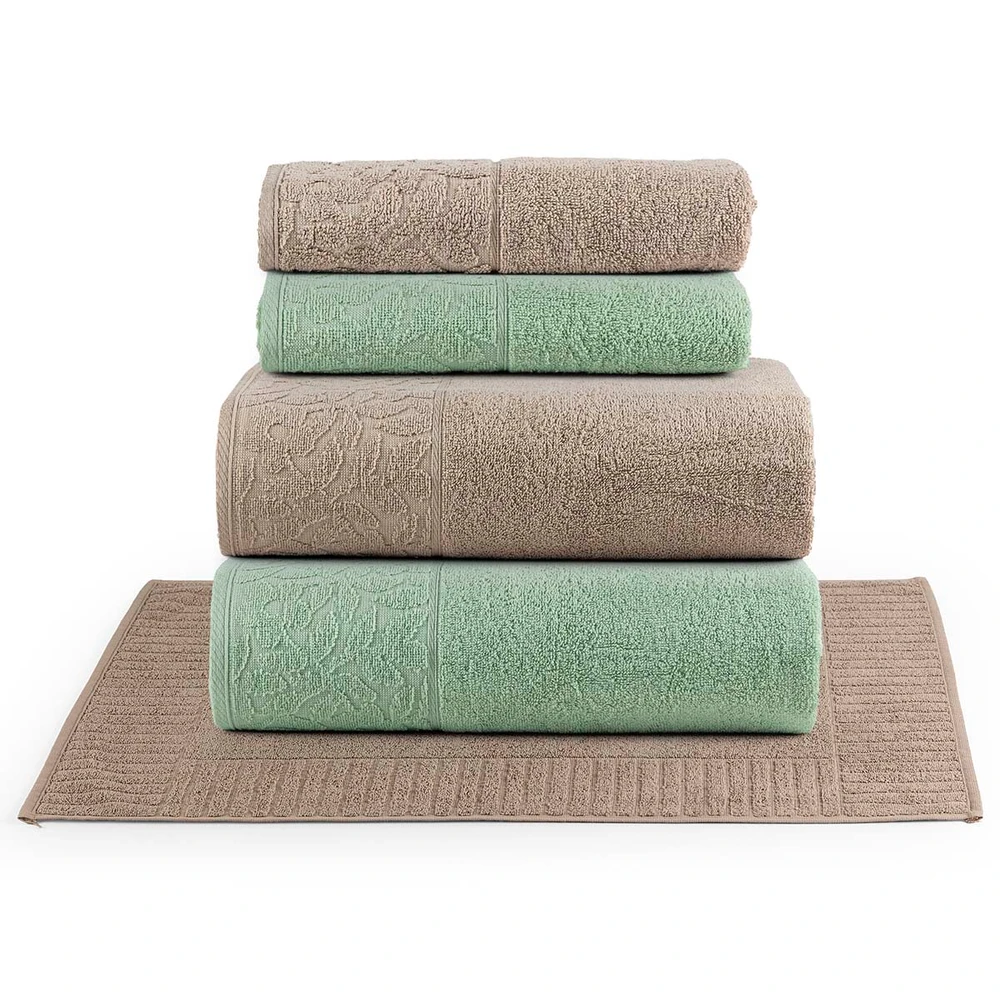 Jogo de Banho Blume Toalhas Macias 100% Algodão Fio Penteado 5 Peças Verde e Bege