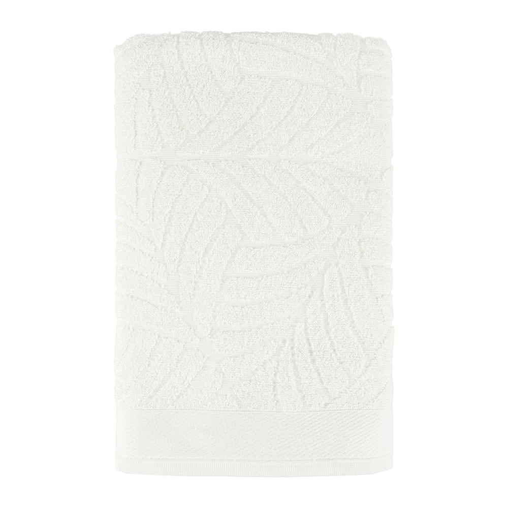 Inspirado na Costela de Adão, planta tropical de folhas exuberantes e cheias de personalidade, o conjunto apresenta um lindo trabalho em jacquard com desenho em formato de folhas, adicionando textura, frescor e charme à decoração do banheiro.
